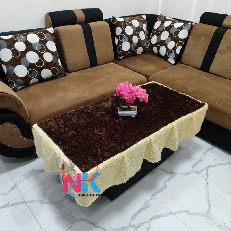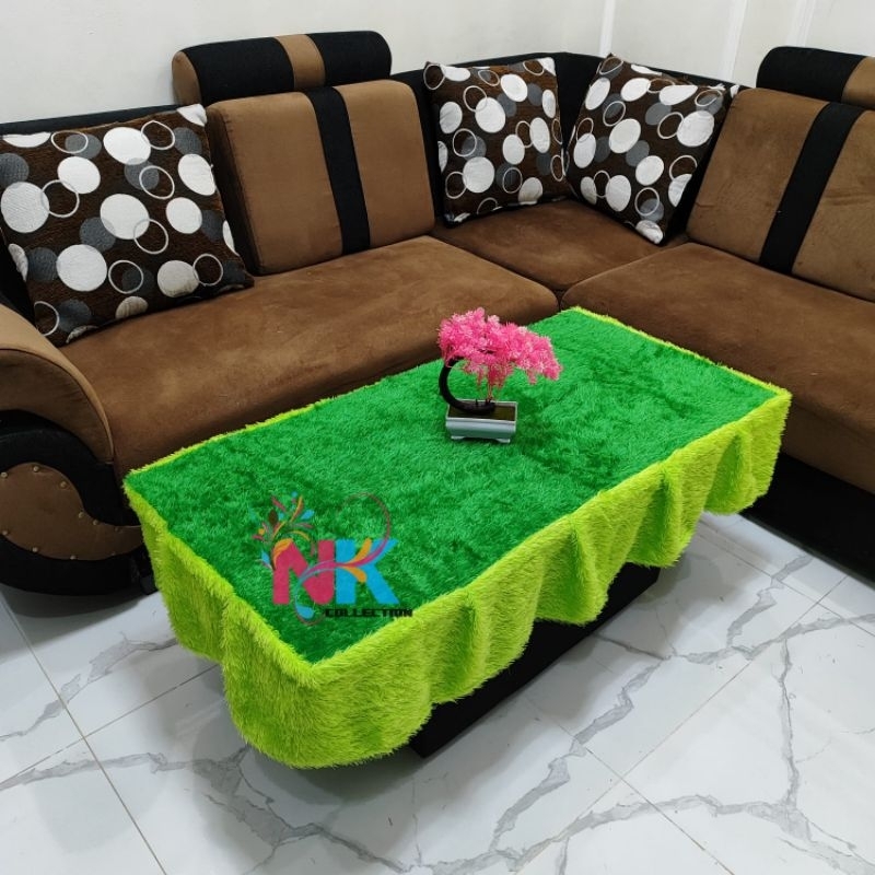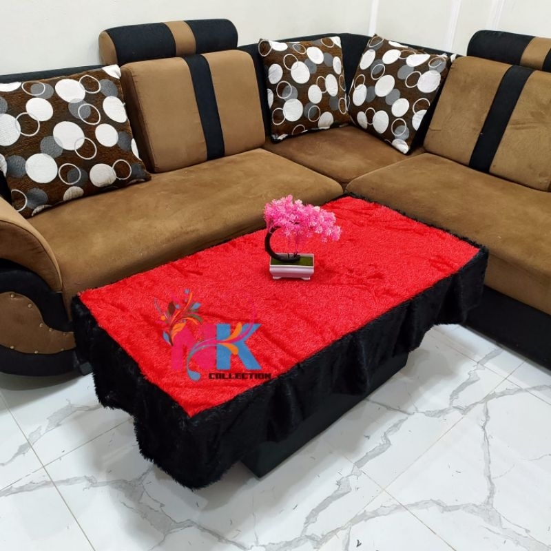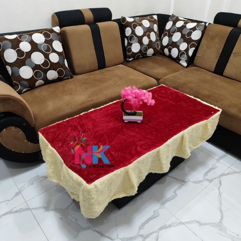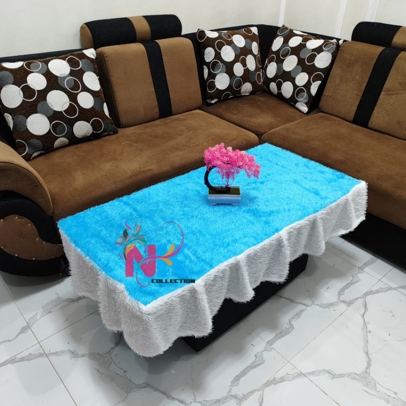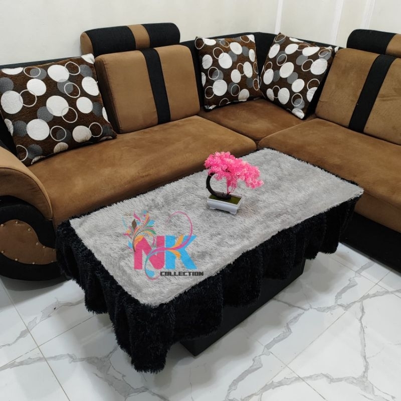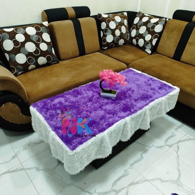 Taplak meja rumbai kombinasi bulu rasfur uk 100×50 cm rumbai 20 cm / Taplak meja r tamu bulu rasfur