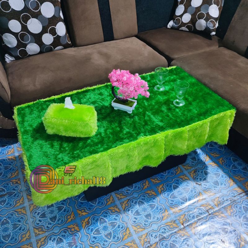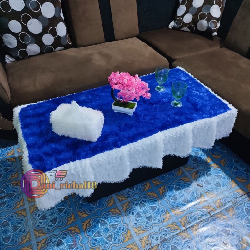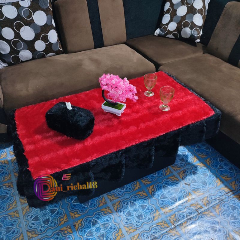 Taplak Meja kaca R tamu rumbai bulu rasfur / Taplak meja kaca rumbai kombinasi / Taplak meja rumbai bulu rasfur uk 100×5