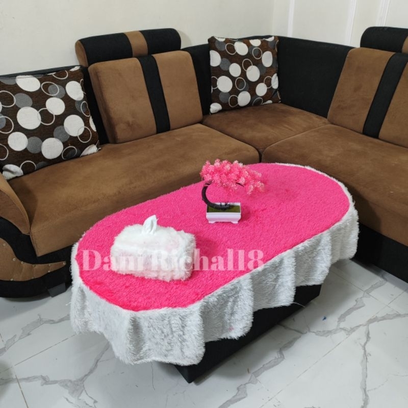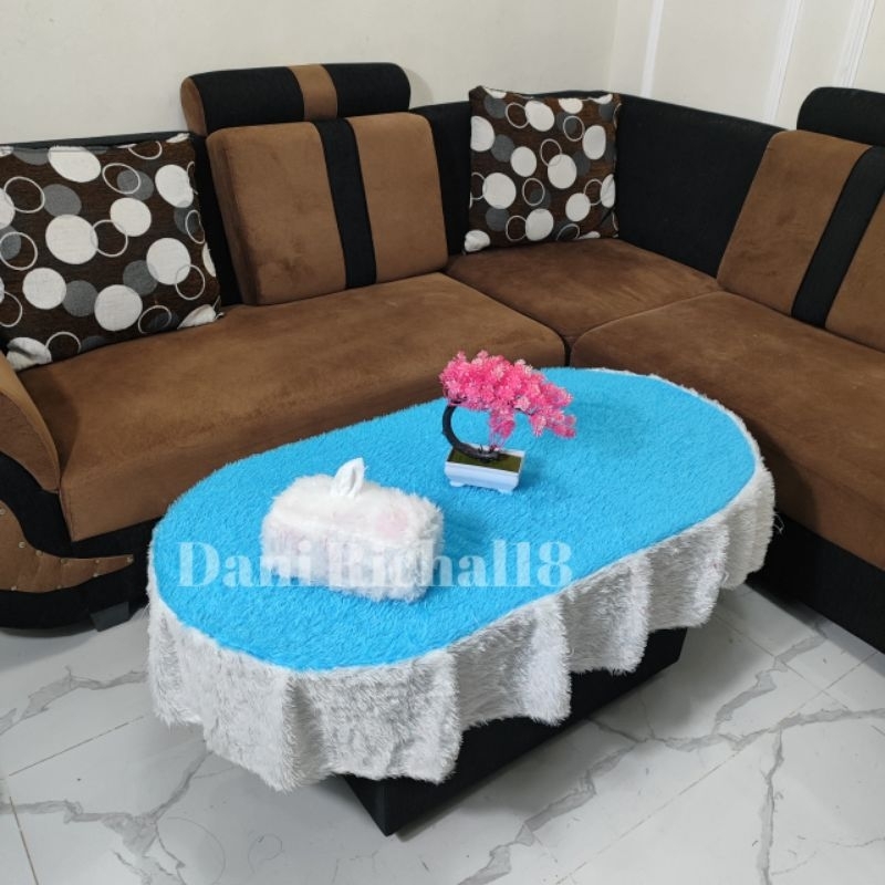 1 Set Taplak meja rumbai oval kombinasi+sarung tisu bulu rasfur uk 100×50 cm