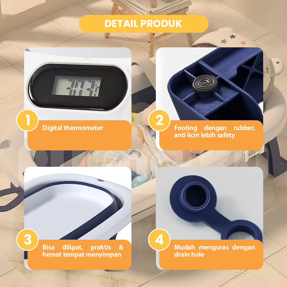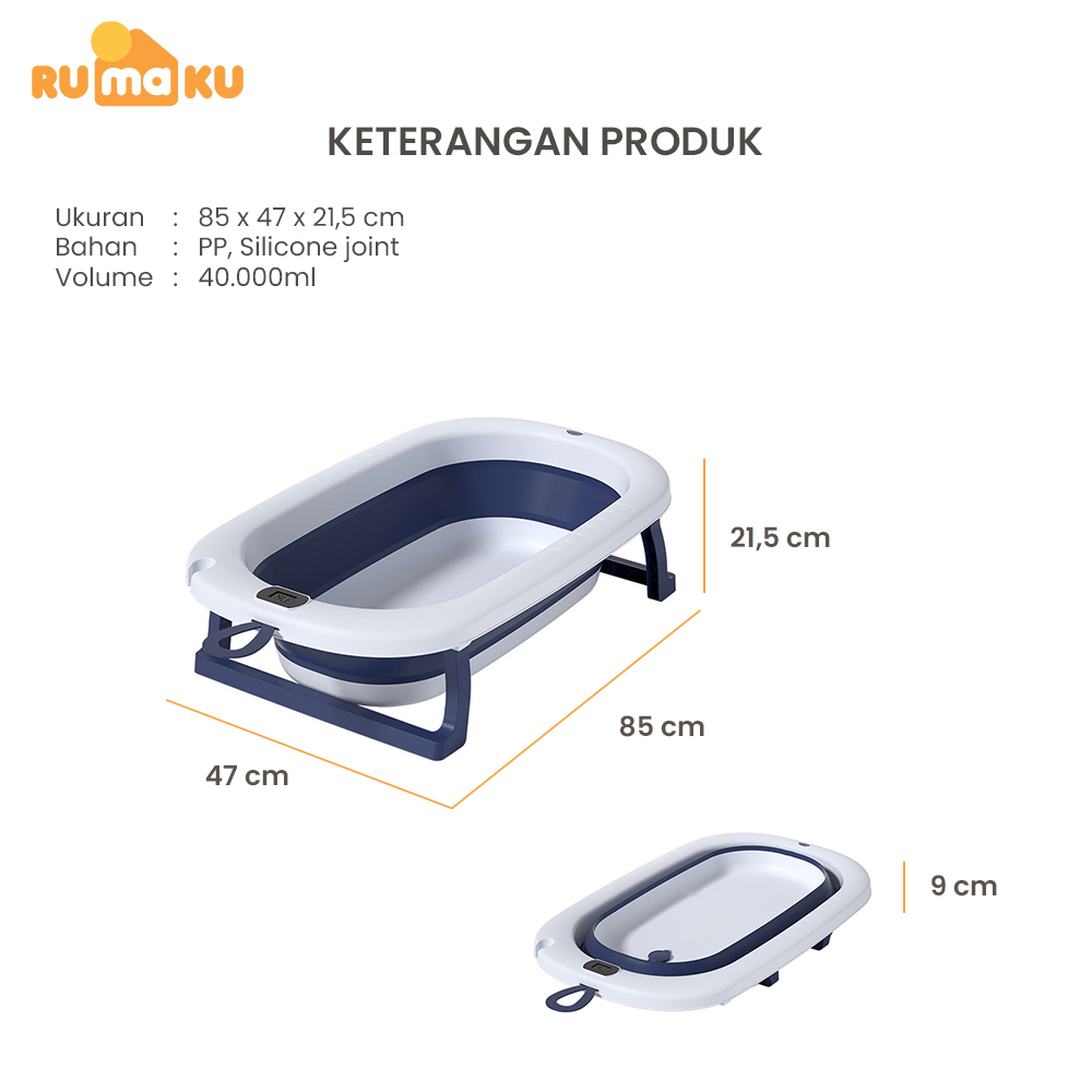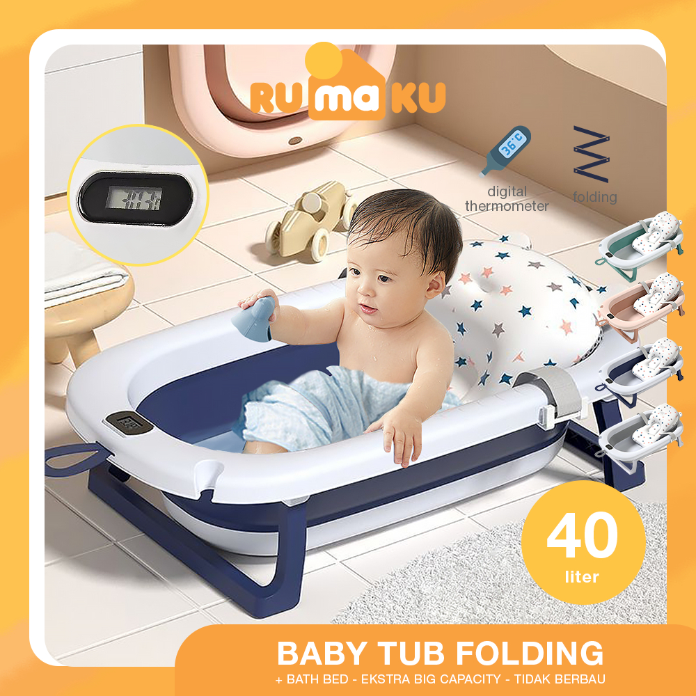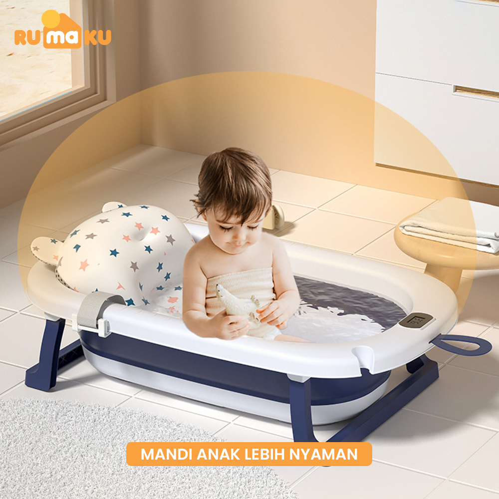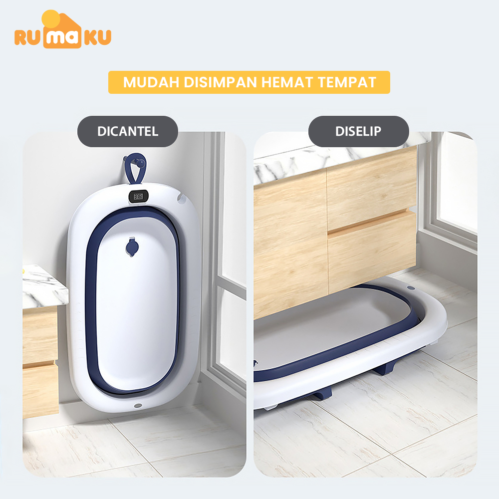 RMK Bak Mandi Bayi Portable Bak Mandi Lipat Portable dengan Pengukur Suhu