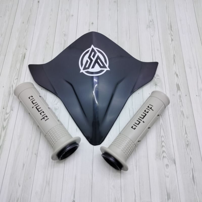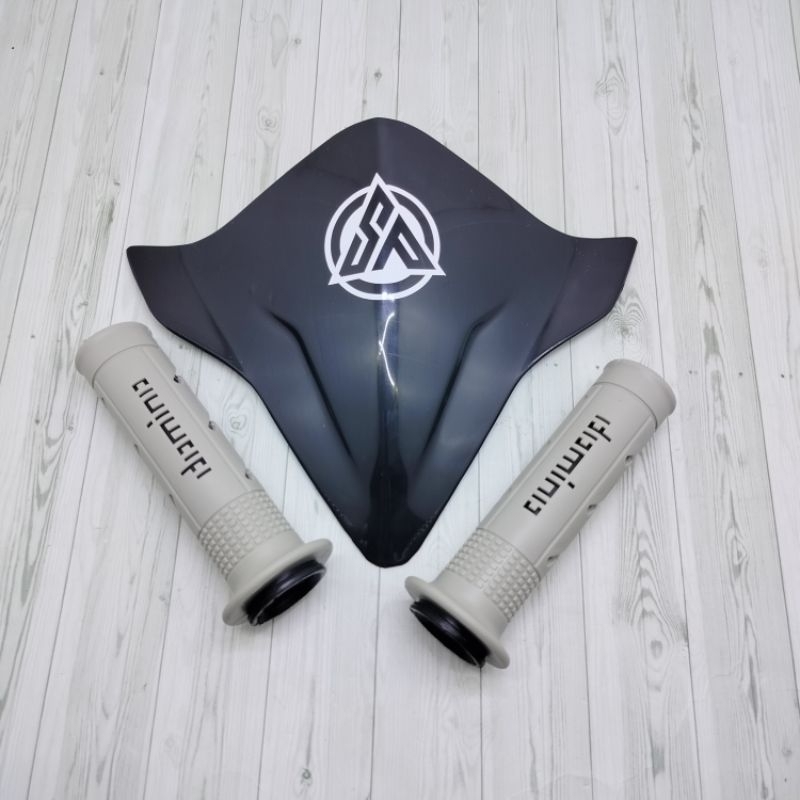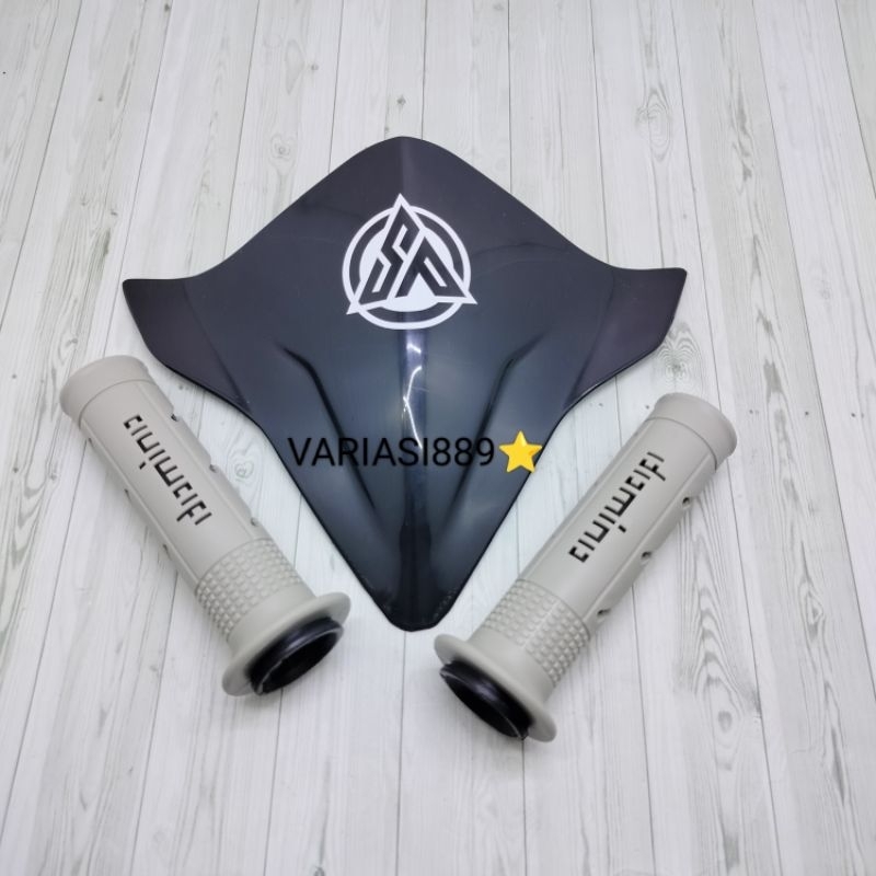 VISOR BEAT NEW FI EPS BEAT DELUXE 2017-2023+HANGRIP SISIK FULL ABUU FREE STIKER( LOGO SP )PUTIH DAN DOUBEL TAPE SEPEDA B