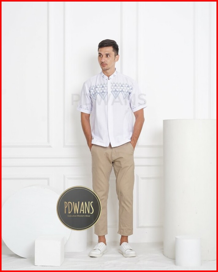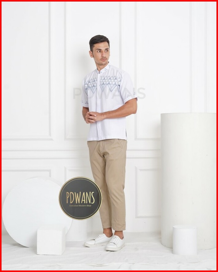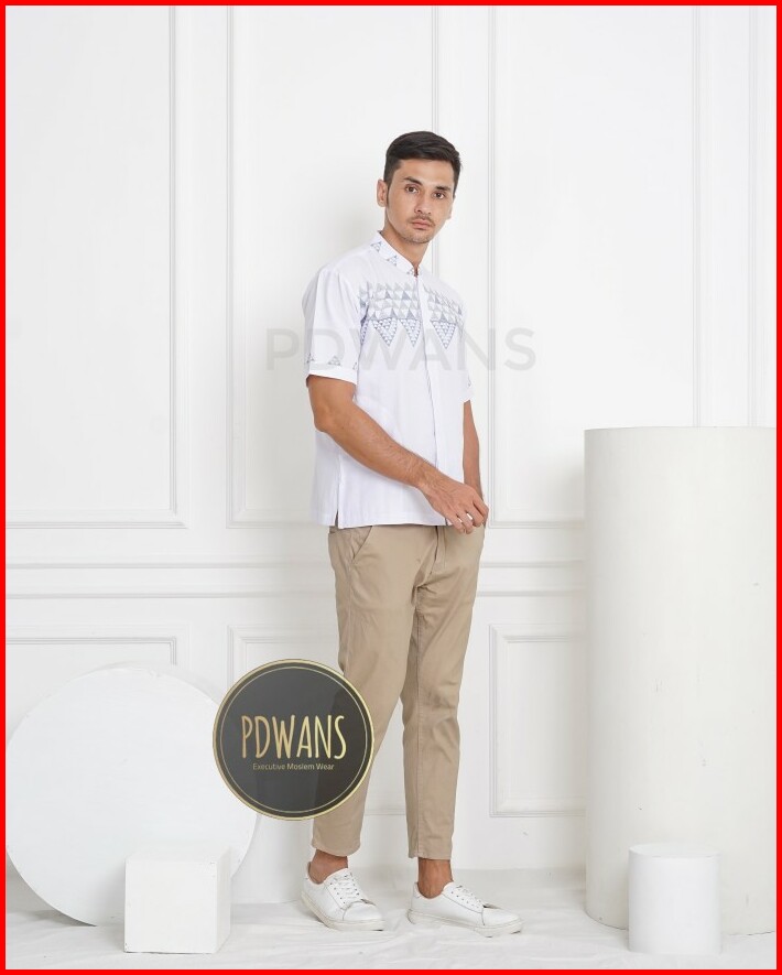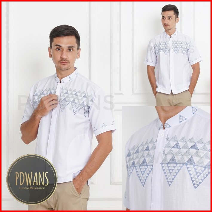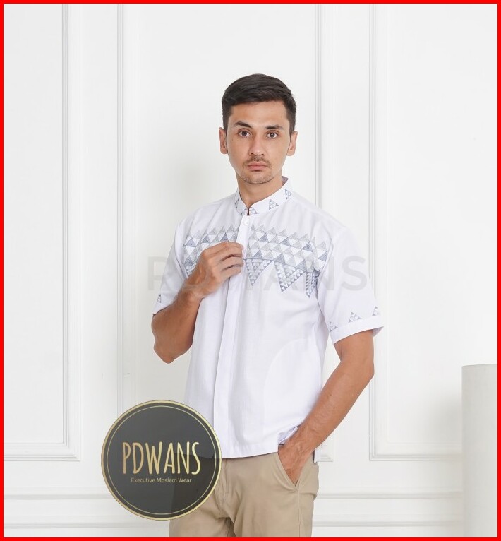 Baju Koko Lengan Pendek Motif Bordir Putih M L Xl Pdwans