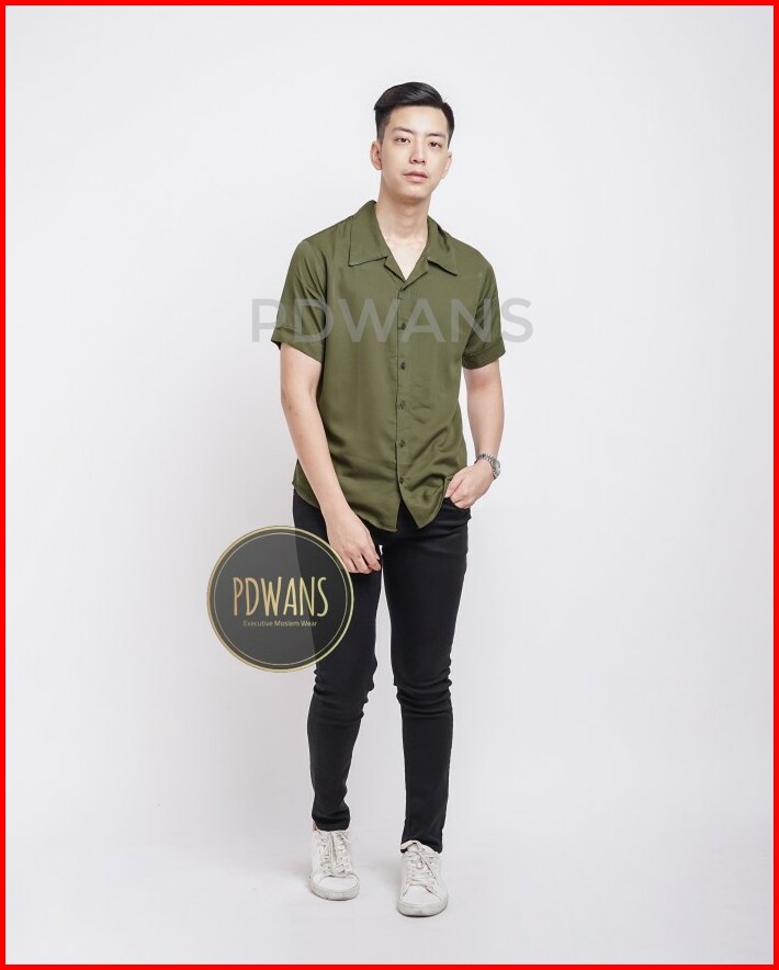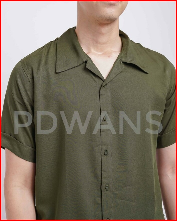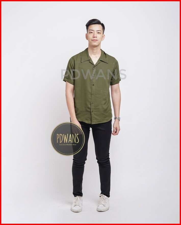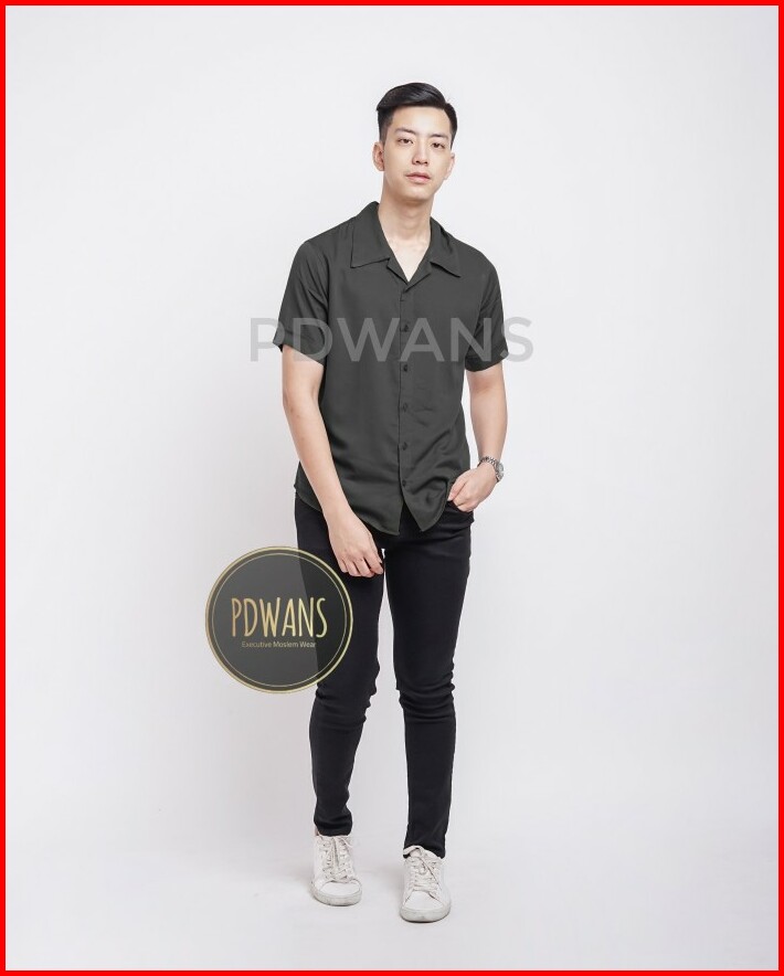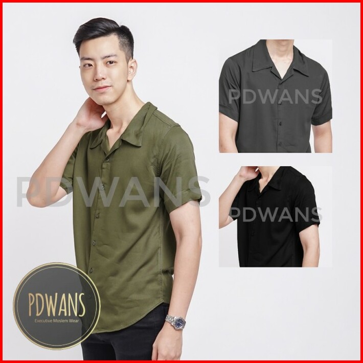 Kemeja Hawaii Pria Katun Rayon Polos Lengan Pendek Korea Style Series