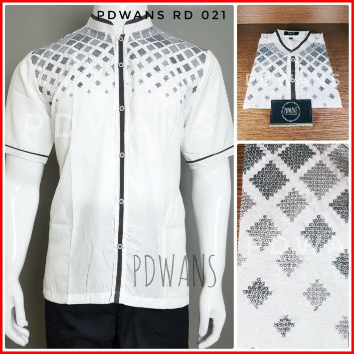 Baju Koko Muslim Lengan Pendek Putih Motif Bordir Pdwans