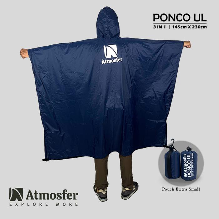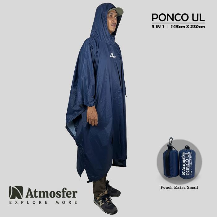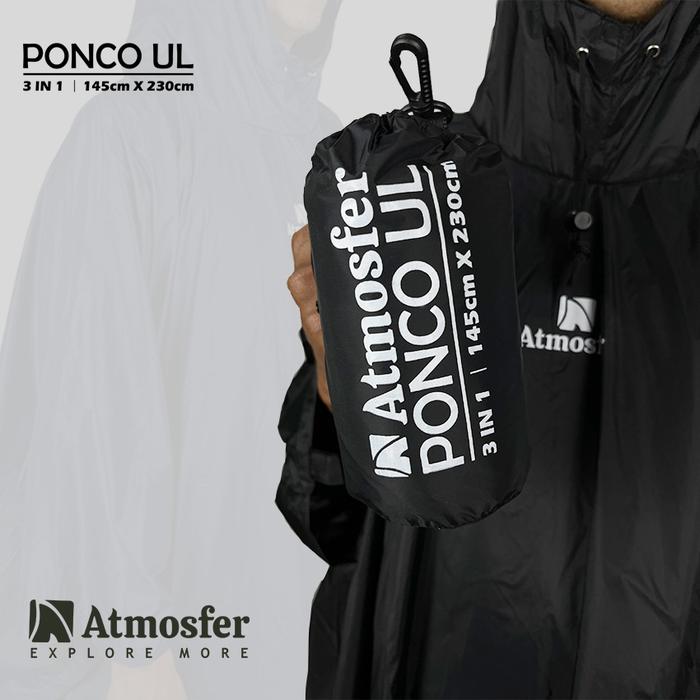 TANPA DP JAS HUJAN PONCO LENGAN ATMOSFER ULTRALIGHT BIVAK3 IN 1 WATERPROOF CAMPING OUTDOOR ORIGINALPONCO HITAM
