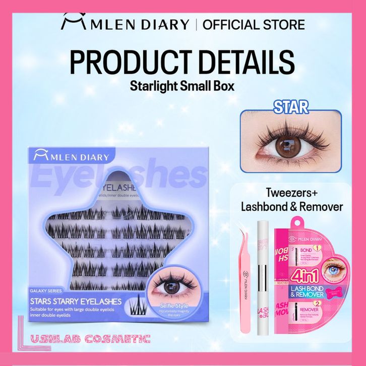 MLEN DIARY STARS Series Bulu Mata Palsu Keriting C Alami Individu yang Dapat Digunakan Kembali Panjang 9 12 mm Set