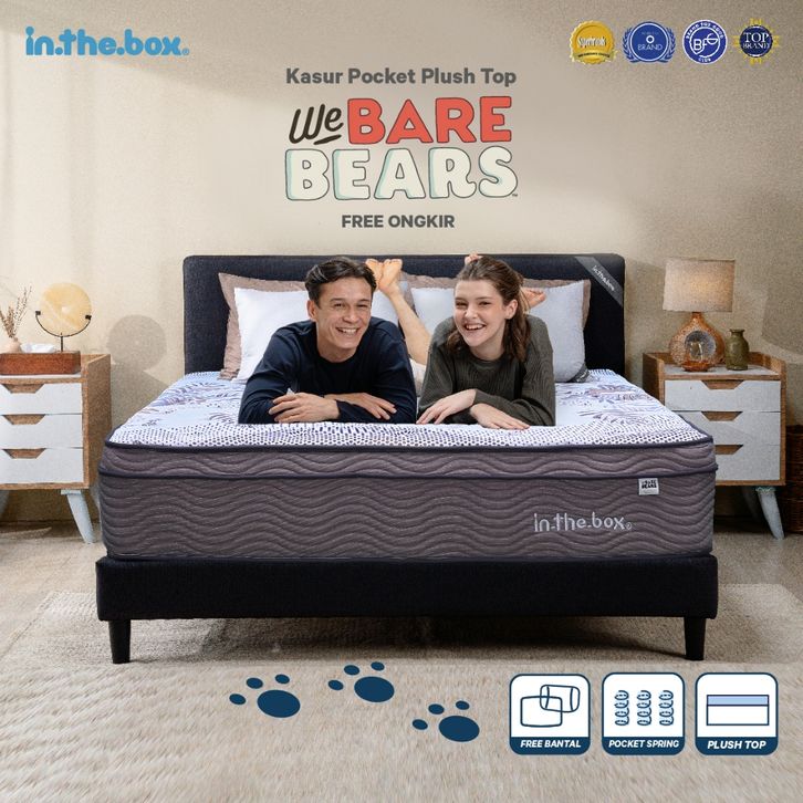 Kasur Springbed Anak INTHEBOX "We Bare Bear" Plush Top - FREE Bantal | Ukuran 90x200 100x200 120x200 140x200 160x200