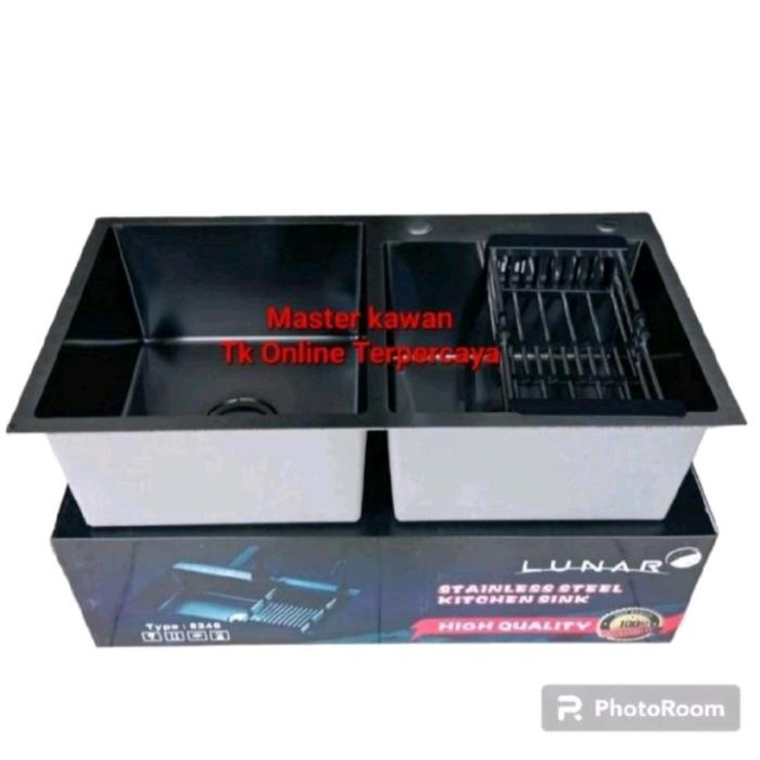 FLASH SALE PAKET LENGKAP KITCHEN SINK LUNAR 8245 HITAM + KRAN FLEKSIBEL HITAM BLACK STAINLESS