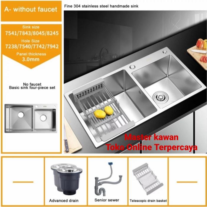 FLASH SALE KITCHEN SINK STAINLESS 7540BAK CUCI PIRING 2 LUBANG KOTAK MINIMALIS