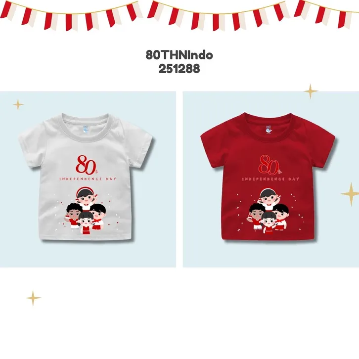 ORIGINAL NAKED & FREE BAJU KAOS BAYI SAMPAI DEWASA UNISEX – “80TH INDONESIA” KEMERDEKAAN | KATUN 30S IDN-1