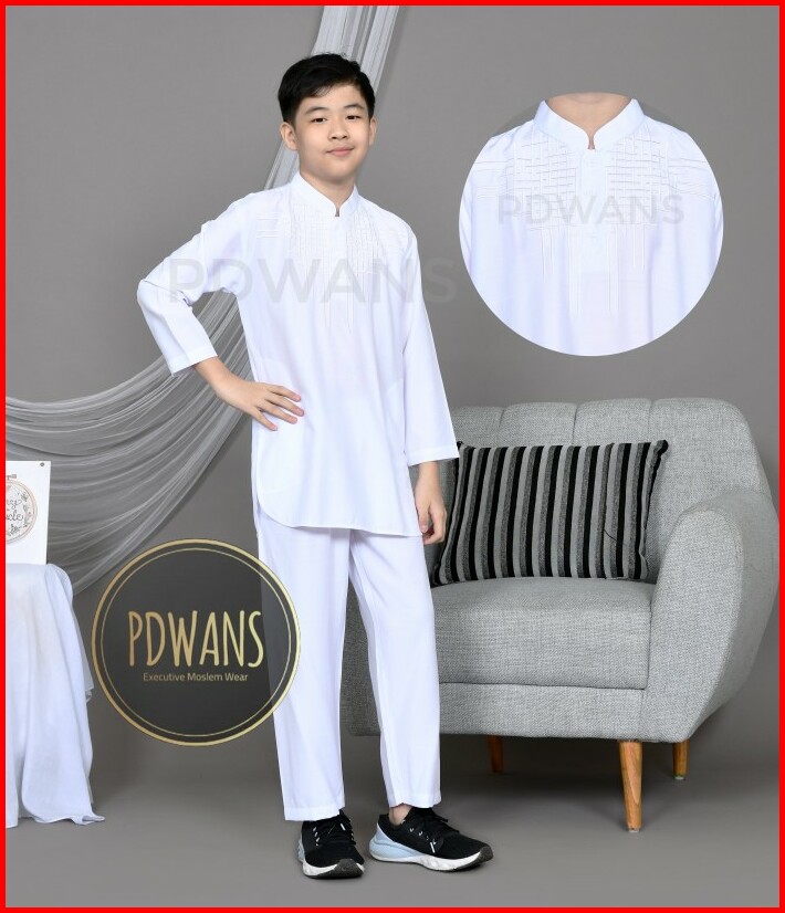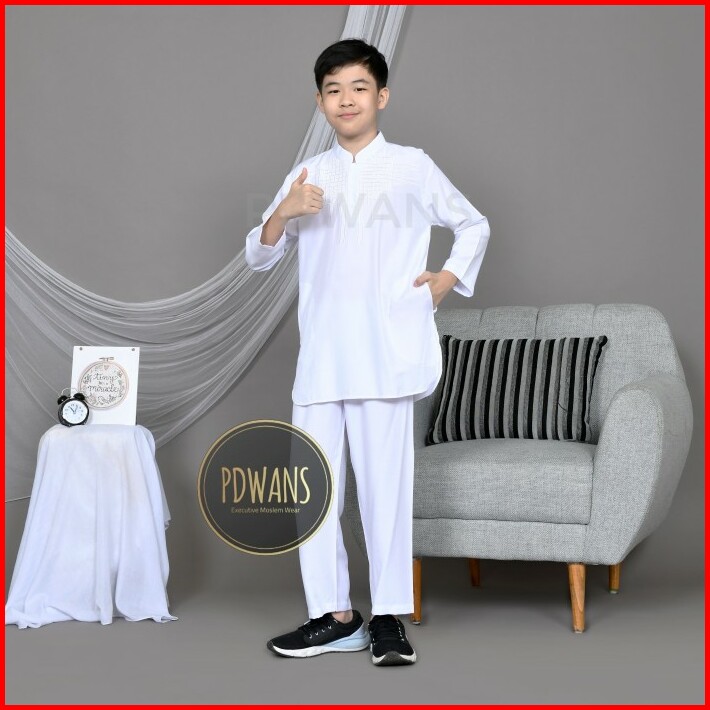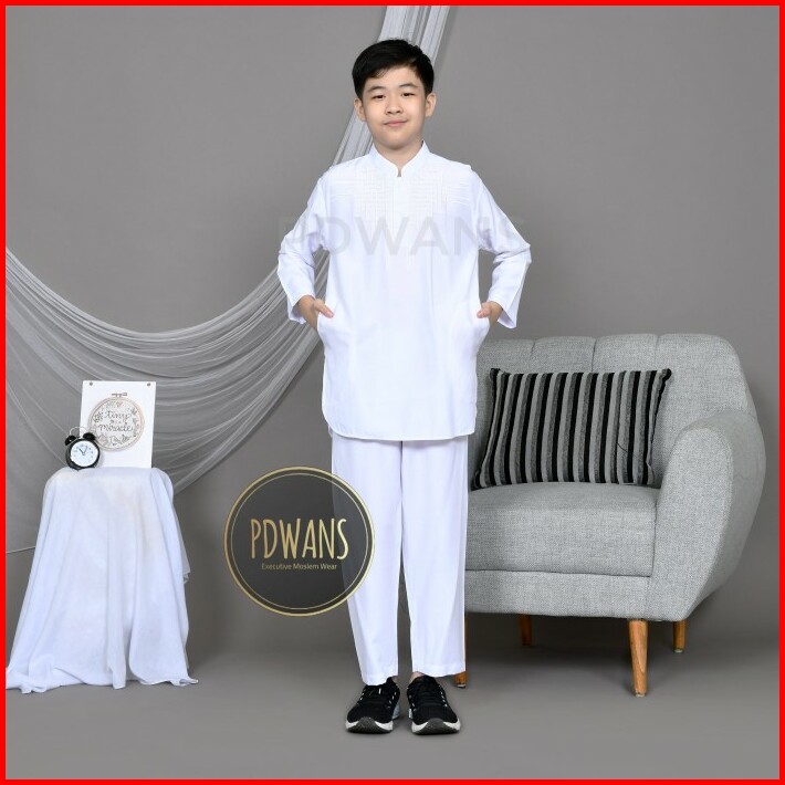 Baju Koko Setelan Pakistan Anak Putih Motif Bordir Bgm07 Pdwans