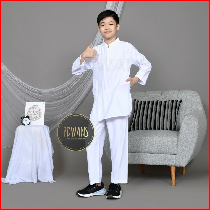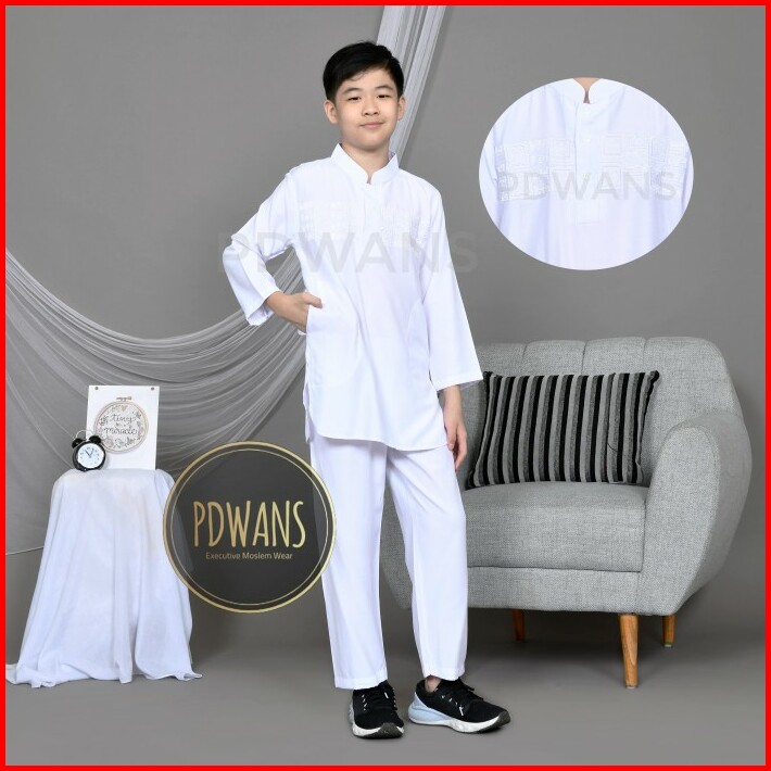 Baju Koko Setelan Pakistan Anak Putih Motif Bordir Bgm08 Pdwans