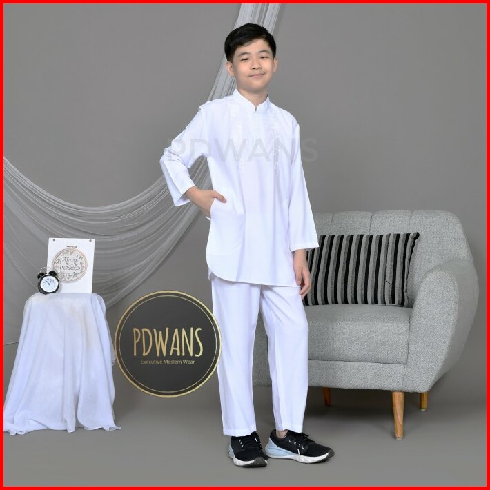 Baju Koko Setelan Pakistan Anak Putih Motif Bordir Bgm09 Pdwans