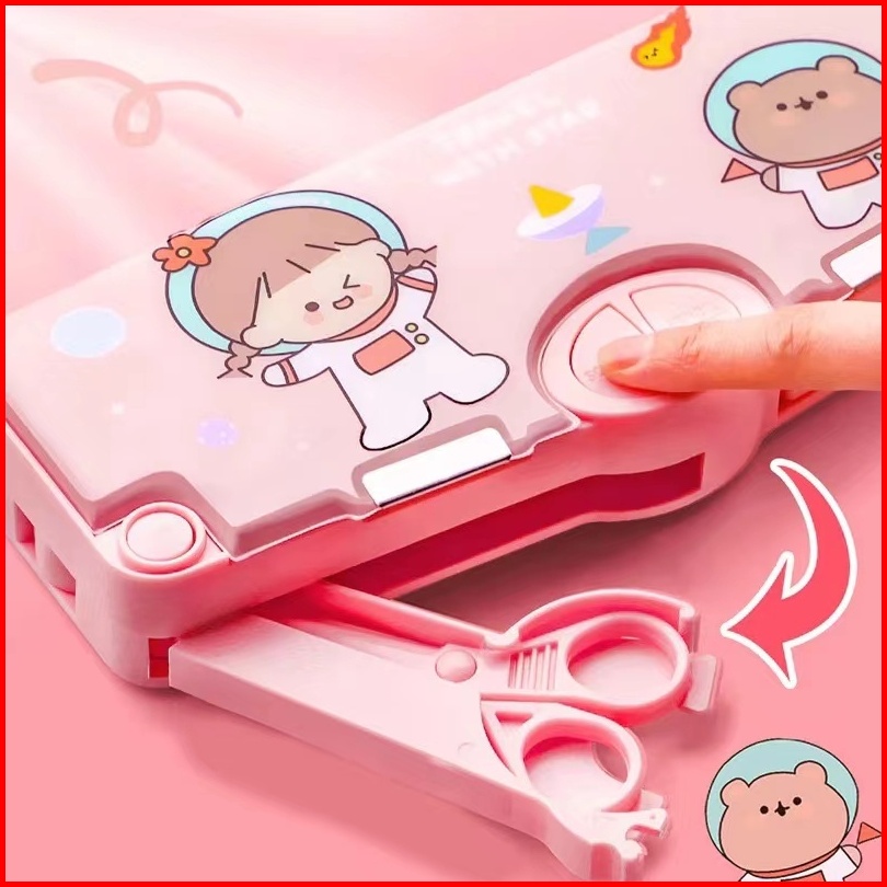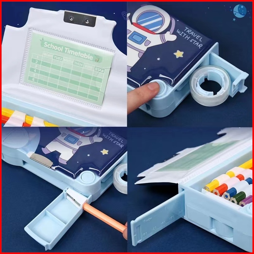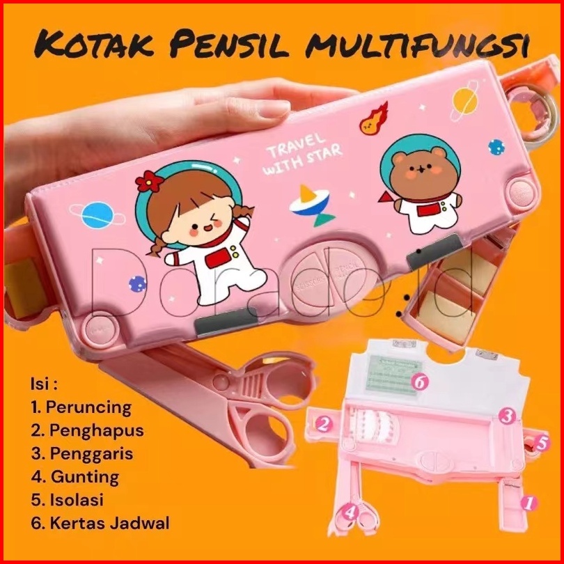 Ready Kotak Pensil Multifungsi Lengkap Peruncing Gunting Isolasi Penghapus Penggaris Kotak Pensil Multifungsi Motif Unic
