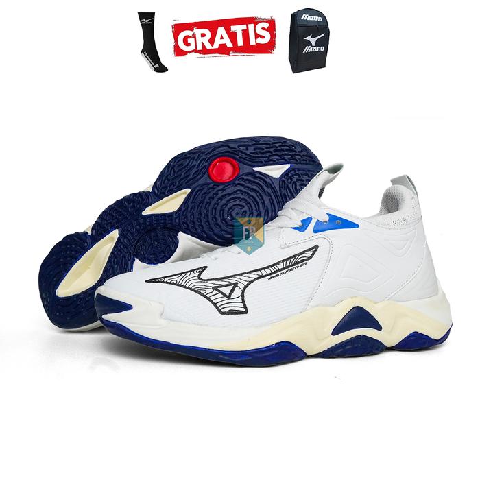 TANPA DP SEPATU VOLLY MIZUNO MOMENTUM 3 LOW VERSI PENDEK PRIA DAN WANITAWHITE BLUE 38