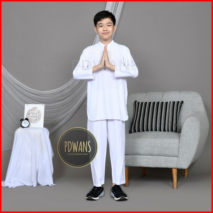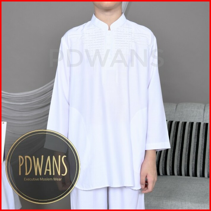 Baju Koko Setelan Pakistan Remaja Putih Motif Bordir Bgm07 Pdwans
