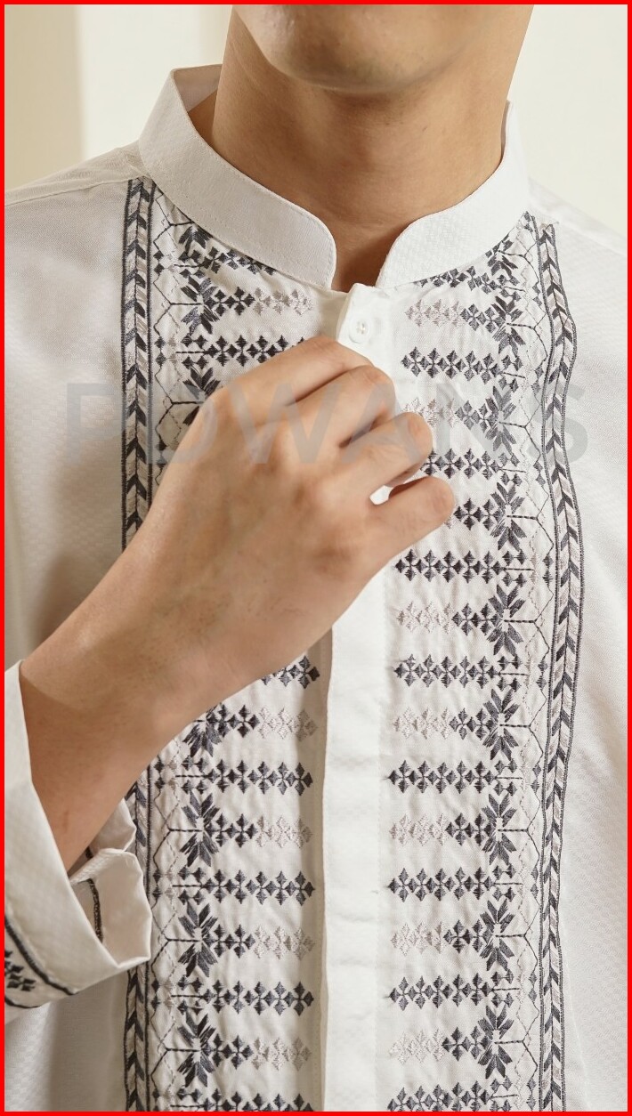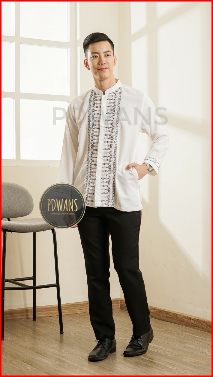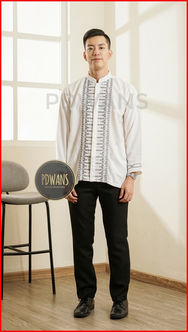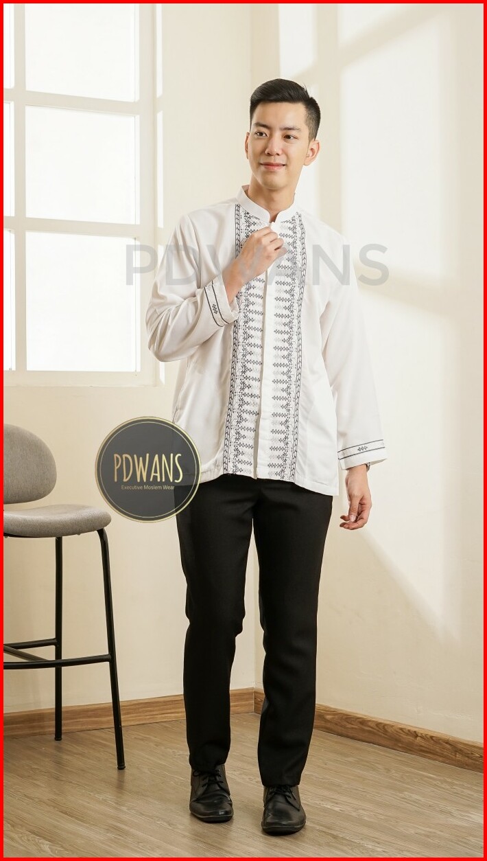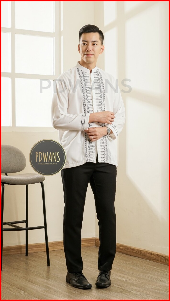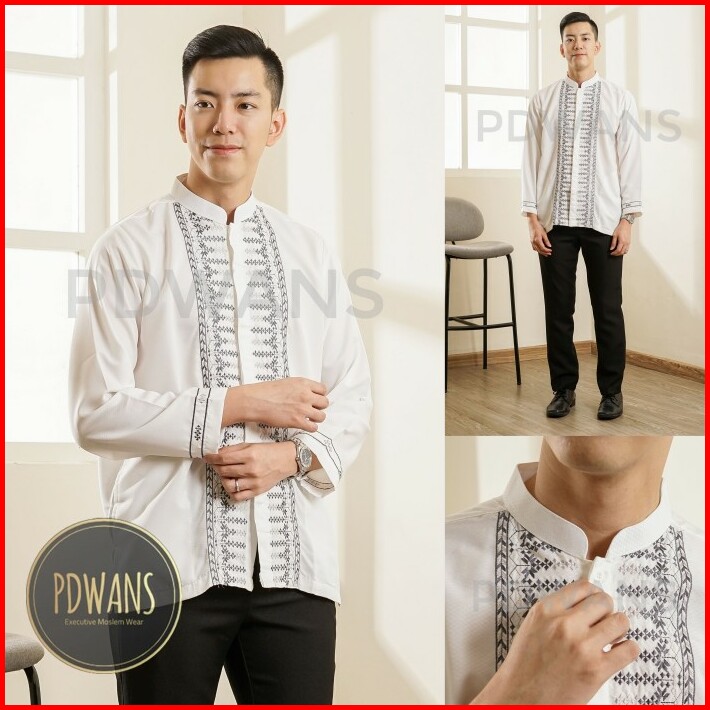 Baju Koko Muslim Pli Katun Putih Tulang Bordir Pdwans