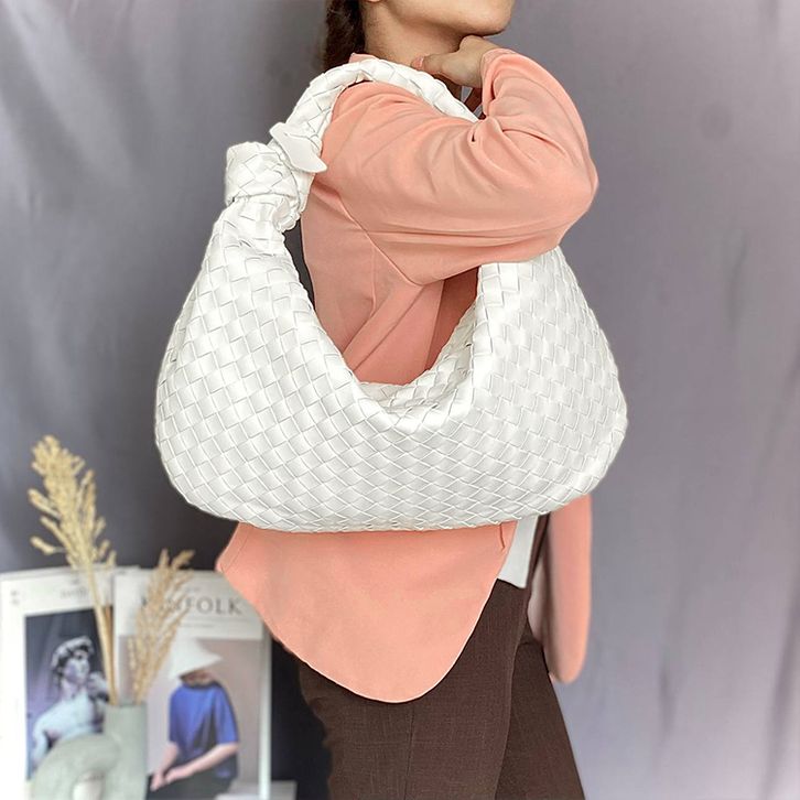 THB-10WT WHITE VOLVA WOVEN DESIGNER HANDBAG