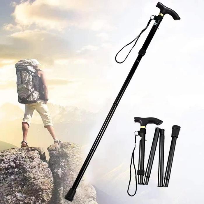 TANPA DP TONGKAT LIPAT HIKING TREKKING POLE TELESCOPIC 4 SECTION FOLDABLEZ4HITAM