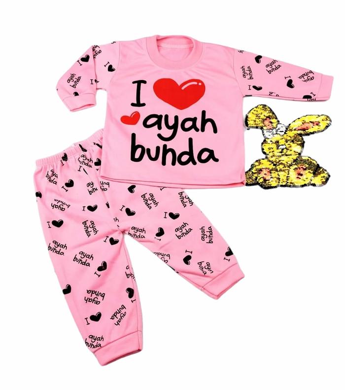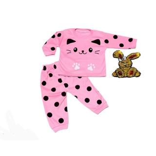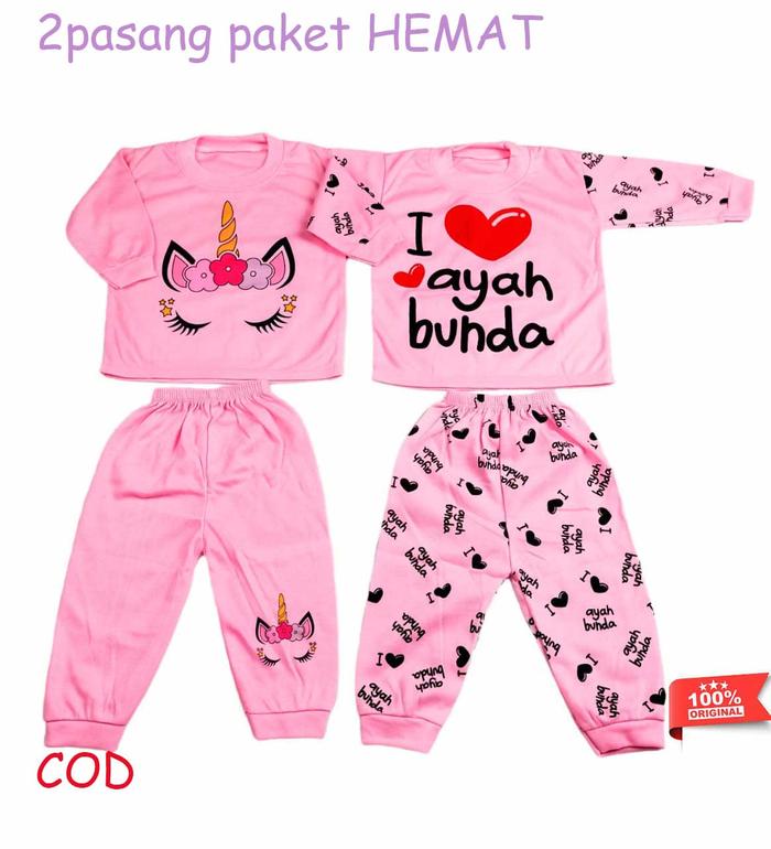TANPA DP 2 PASANG BAJU TIDUR BAYI PEREMPUAN 0 6 DAN 6 12 BULAN LUCU WARNA PINK SETELAN PIYAMA KAOS OBLONG LENGAN PANJANG2PASANG PINK BAYI 012BU