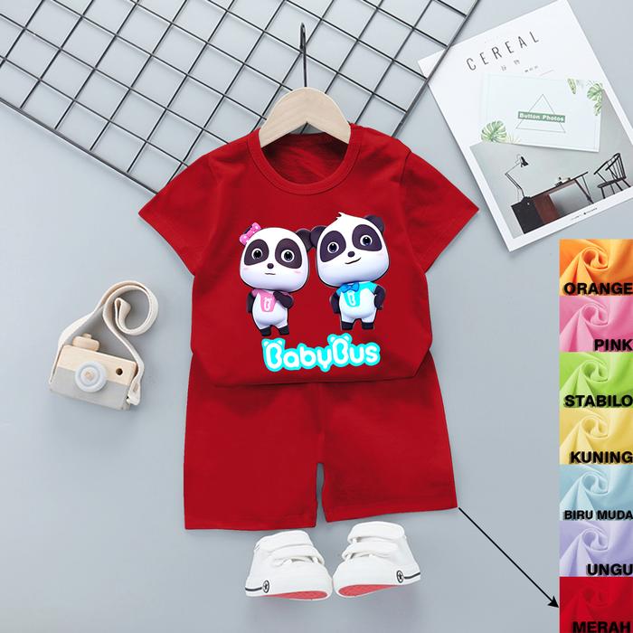 TANPA DP SETELAN BAJU ANAK LAKI LAKI PEREMPUAN OBLONG LENGAN PENDEK 04 TAHUNMERAH 01 USIA 01 TAHUN