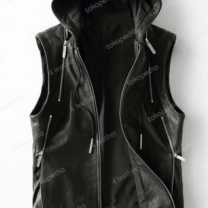 TANPA DP GARANSI KULIT ASLI ROMPI KULIT PRIA HOODIE KUPLUK ROMPI KULIT VESTXS KULIT DOMBA