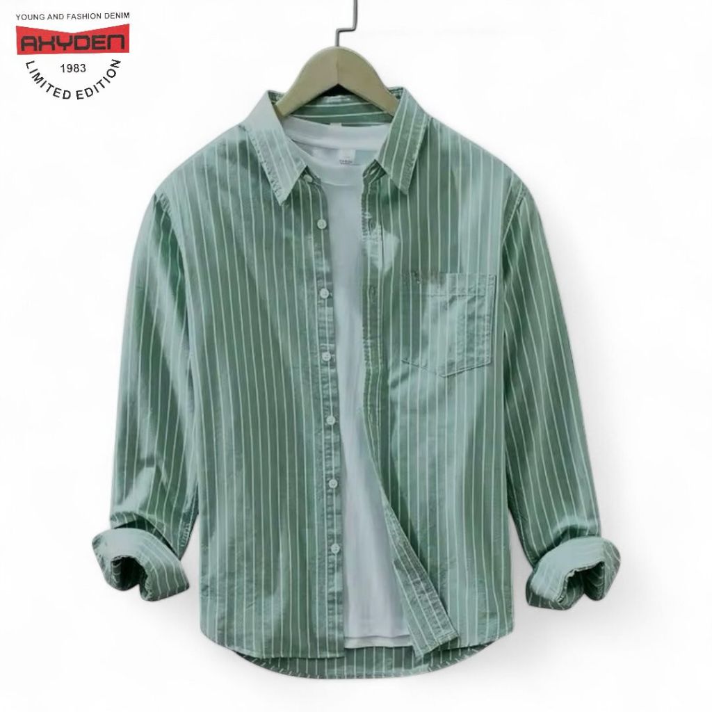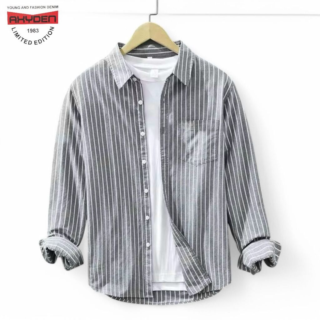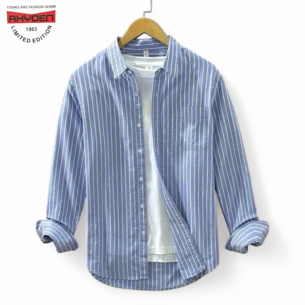 AXYDEN PREMIUM Kemeja Pria Dewasa Lengan Panjang Motif Salur Kecil/Besar//Kemeja Panjang Pria Stripe Bahan Adem Full catun Motif Kekinian//Kemeja Regularfit Kasual Dan Formal Dan