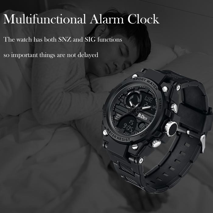 TANPA DP BIDEN JAM TANGAN PRIA DIGITAL&ANALOG OLAHRAGA MILITER PRIA TALI SILIKON JAM TANGAN COWOKHITAM