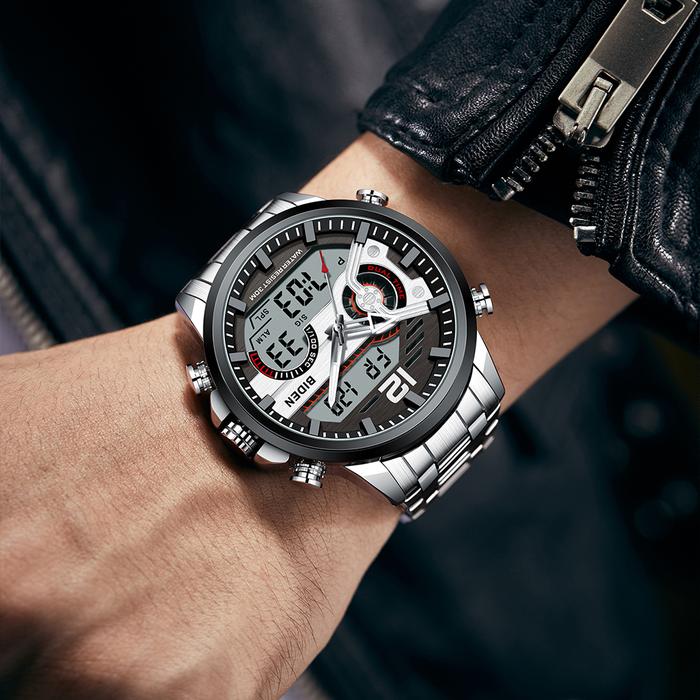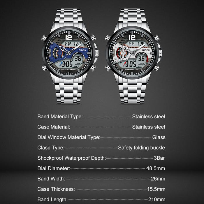 TANPA DP BIDEN JAM TANGAN PRIA TALI STAINLESS STEEL ANALOG&DIGITAL BISNIS JAM TANGAN COWOKHITAM