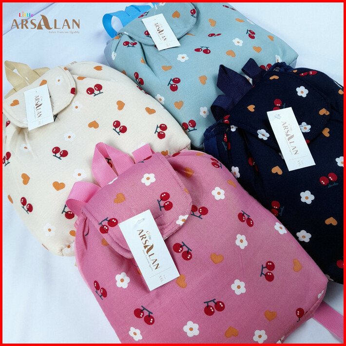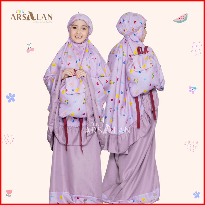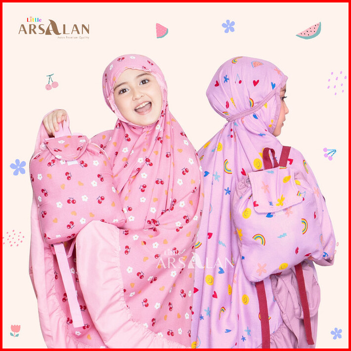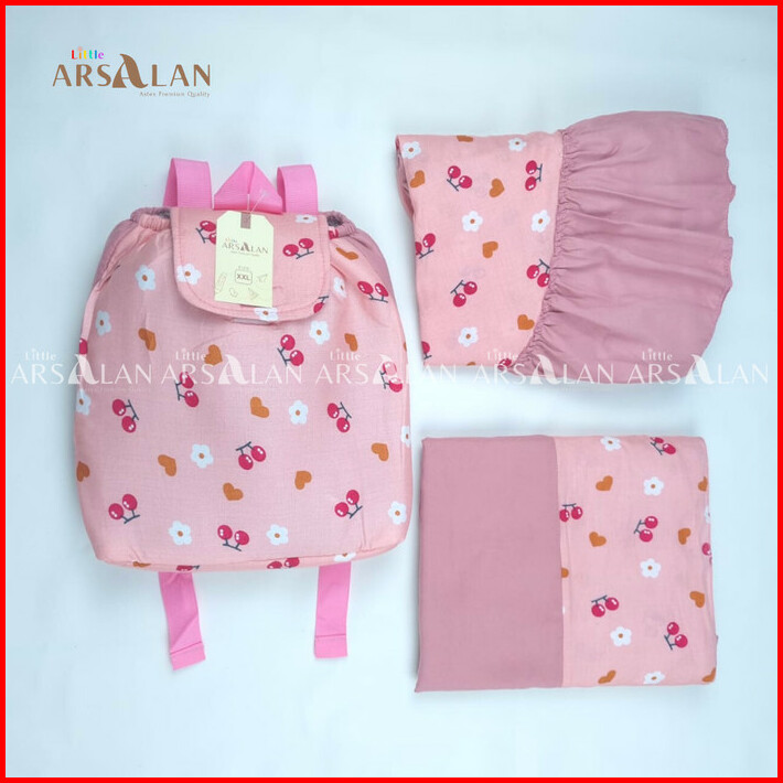 Mukena Anak Rayon Tas Ransel Gendong Cherry Pelangi Usia 2