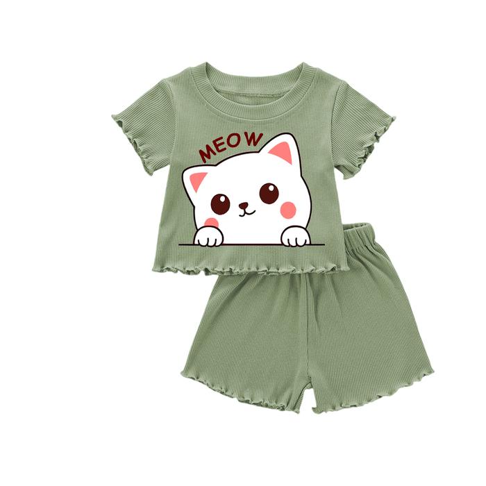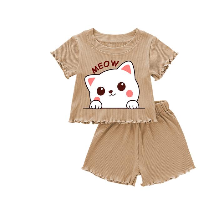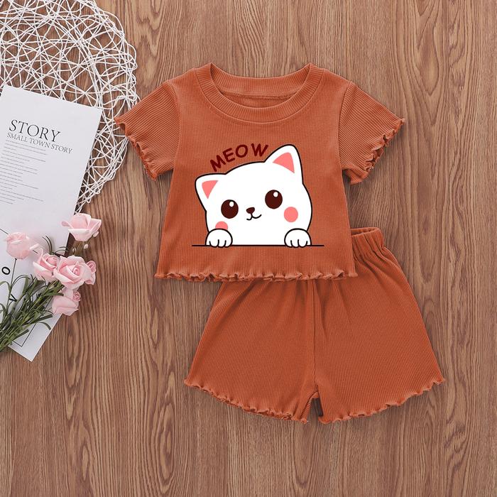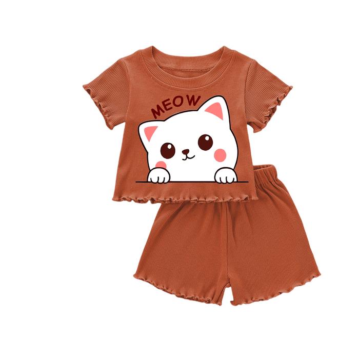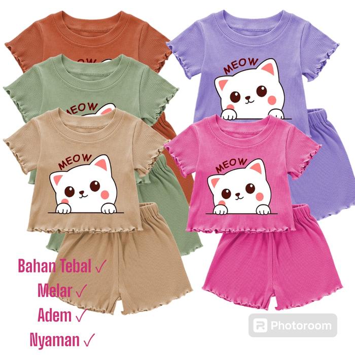 TANPA DP FASHION SET BAYI DAN ANAK PEREMPUAN KATUN KNIT KUCING MEOW USIA 05 TAHUNBATA MEOW NO1 USIA 01 TAHUN