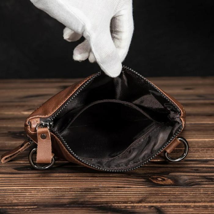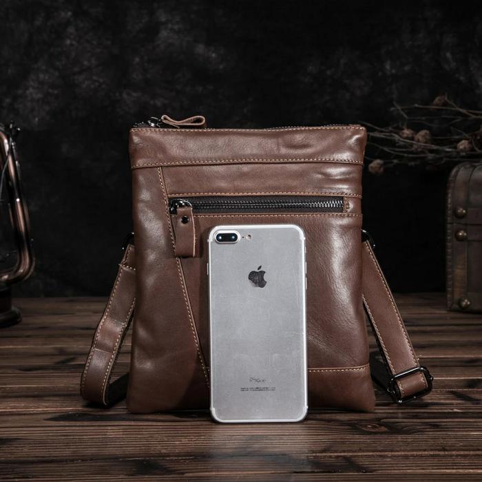 TANPA DP TAS KULIT SELEMPANG PRIATAS PRIA KULIT ASLI SELEMPANG BAHAN KULITCOKLAT TUA