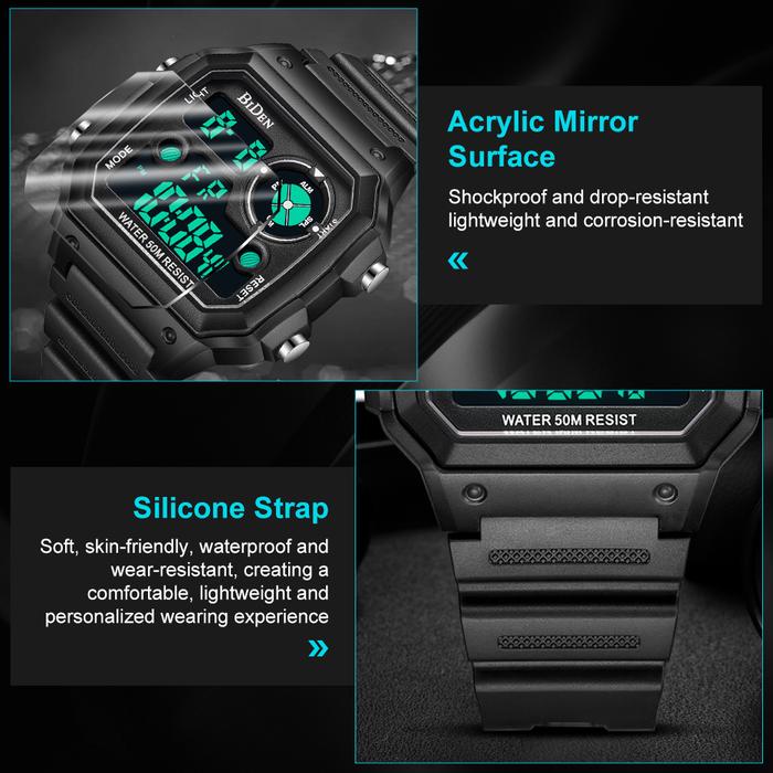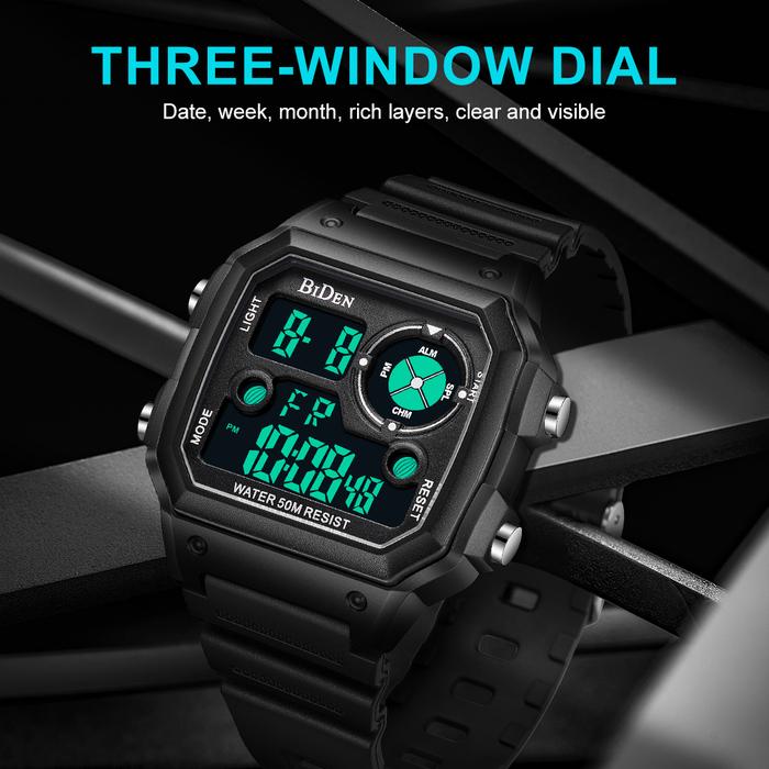 TANPA DP BIDEN JAM TANGAN DIGITAL PRIA SQUARE MILITER OLAHRAGA KASUAL PRIAHIJAU