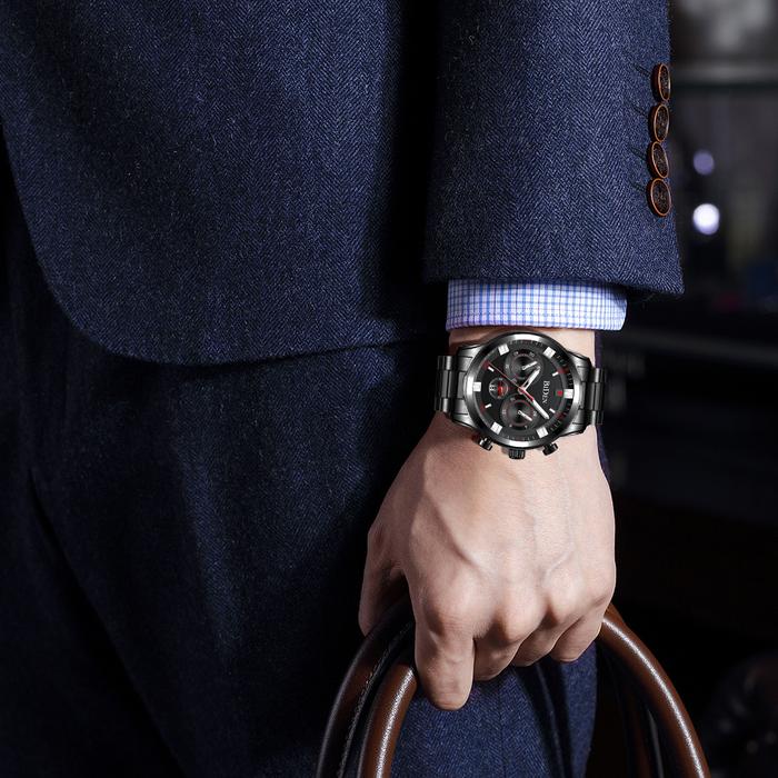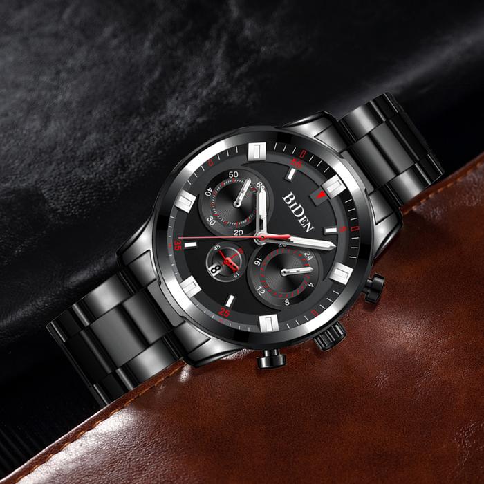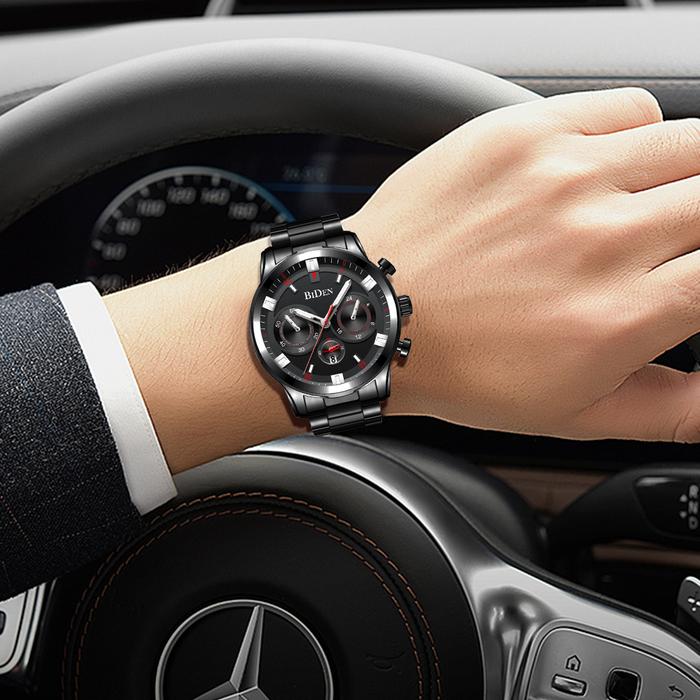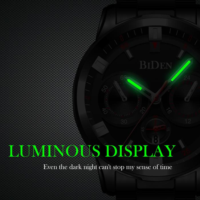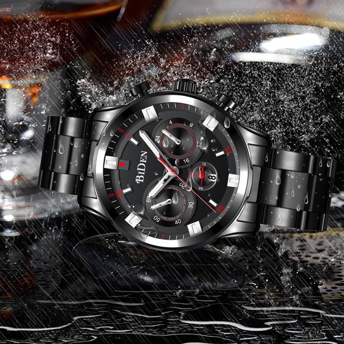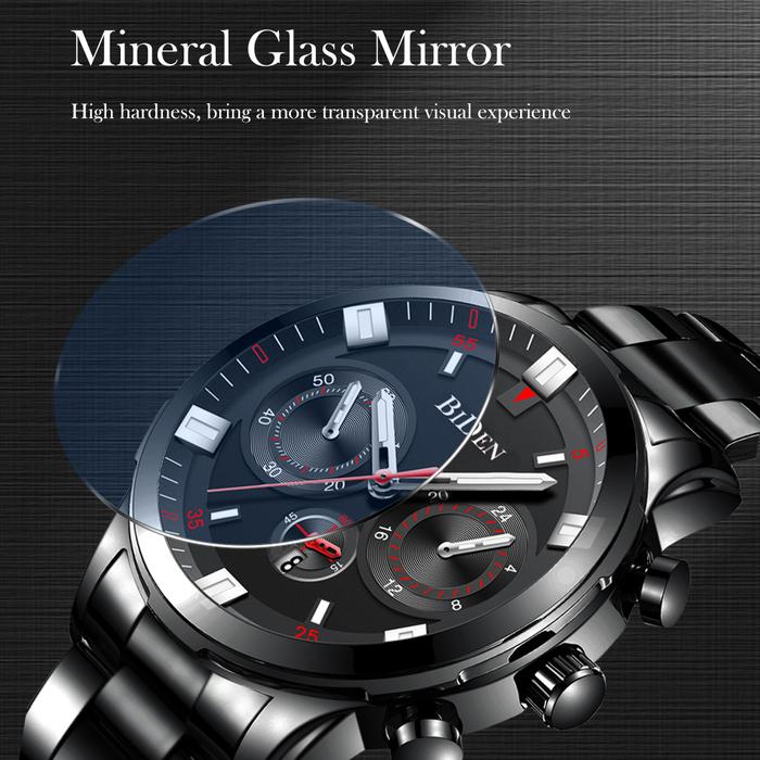 TANPA DP BIDEN JAM TANGAN PRIA BISNIS KALENDER TALI STAINLESS STEEL KUARSA JAM TANGAN COWOKHITAM