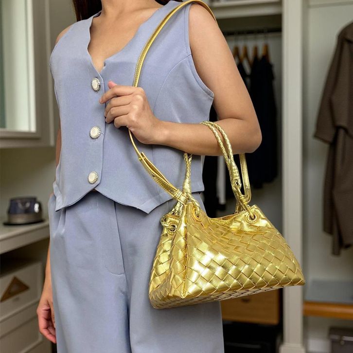 JWETNIK BBS-43GD GOLD BOWI LEATHER BUCKET WOVEN BAG SHOULDER AND CROSSBODY BAG ( NO LOGO )