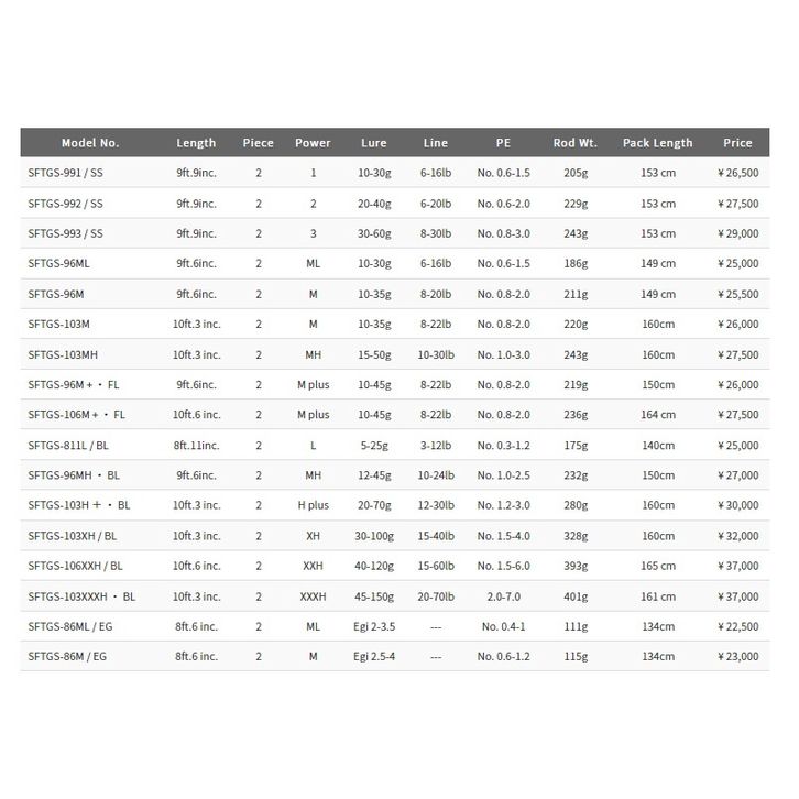 SFTGS-103H+, SFTGS-103M, SFTGS-103MH, SFTGS-103XH, SFTGS-103XXXH, SFTGS-106M+FL, SFTGS-106XXH, SFTGS-86MH/P5, SFTGS-96M+FL, SFTGS-991.SS, SFTGS-992.SS, SFTGS-993.SS