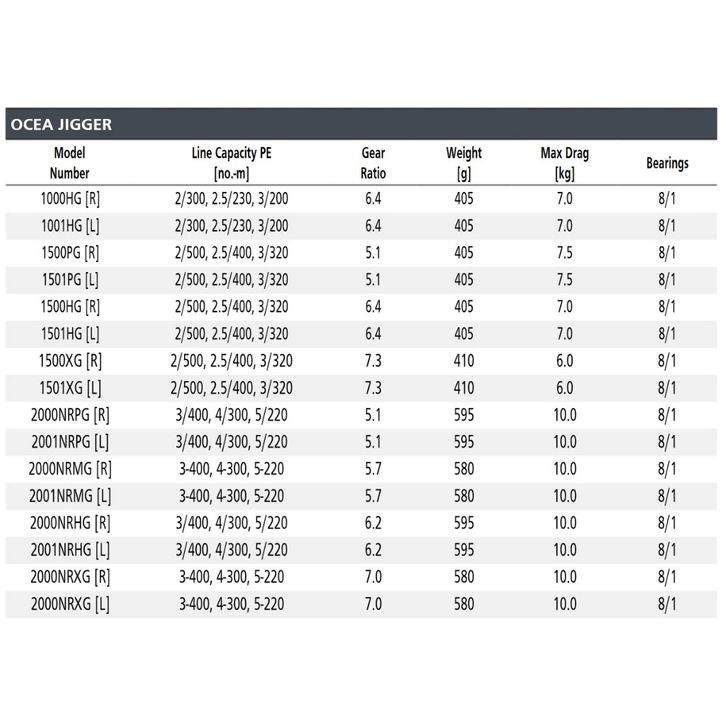 Shimano 2021 Ocea Jigger 1000 1001 1500 1501 2000 2001 HG PG XG NRPG NRHG NRXG NRMG