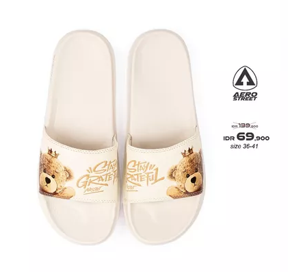 Aerostreet 36-41 Grateful Putih - Sandal Sendal Selop Slip On Casual Pria Wanita Aero street 22ABA0