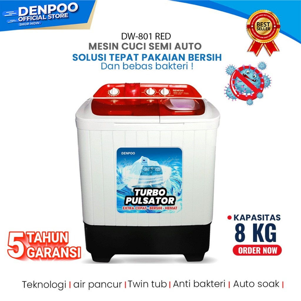 MESIN CUCI 2 TABUNG DENPOO TWIN TUB DW828SG 8 KG DW 8908 TURBO PULSATOR SUPER HEMAT LISTRIK ORIGINAL GARANSI RESMI