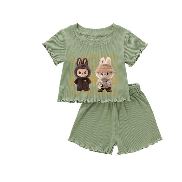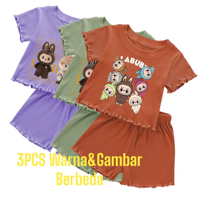 TANPA DP 3PCS SETELAN ANAK PEREMPUAN KATUN KNIT USIA 15 TAHUN3PCS GAMBAR WARNA CAMPUR NO1 USIA 01 TAHUN