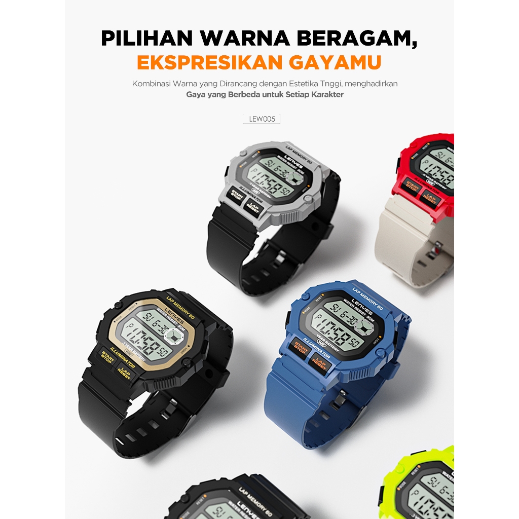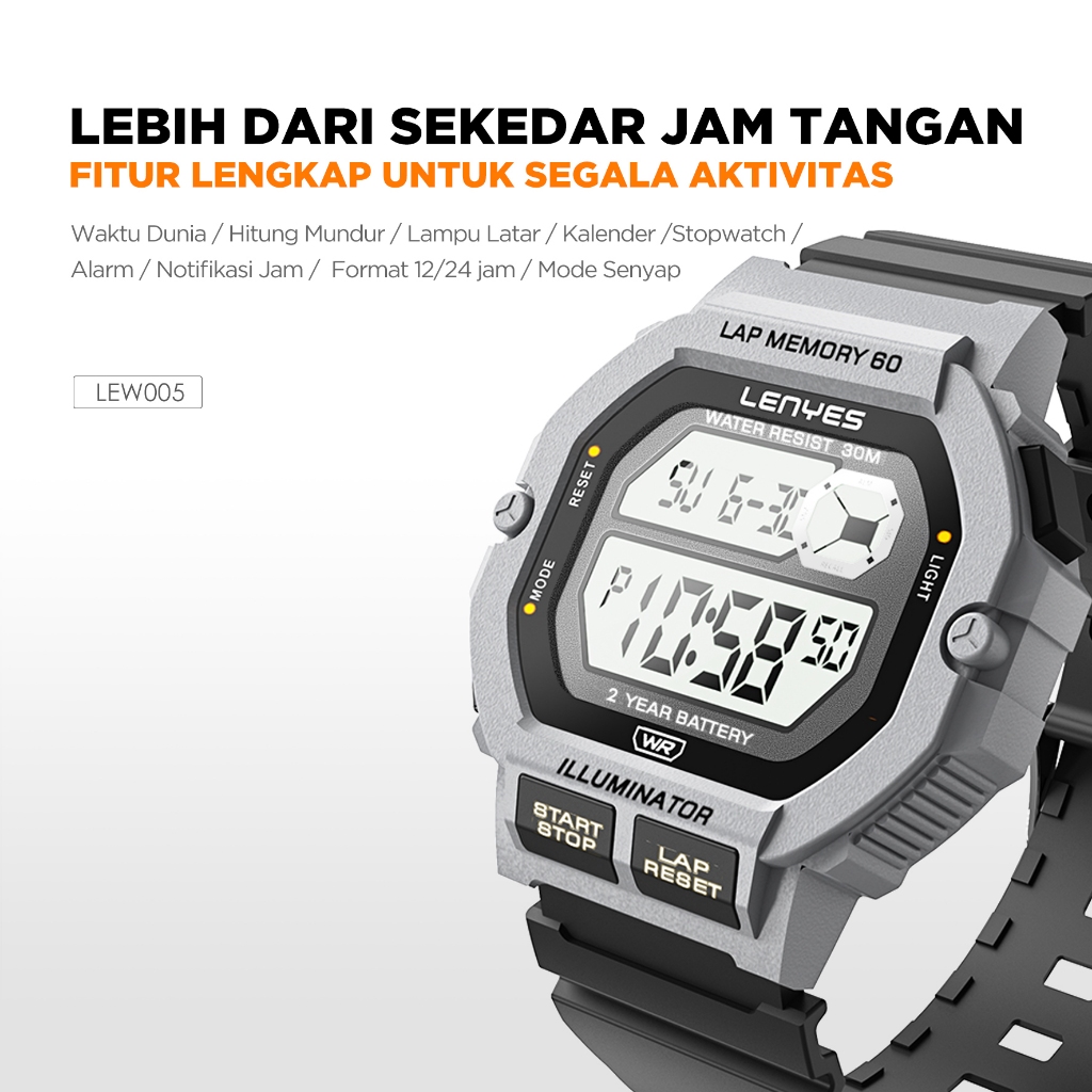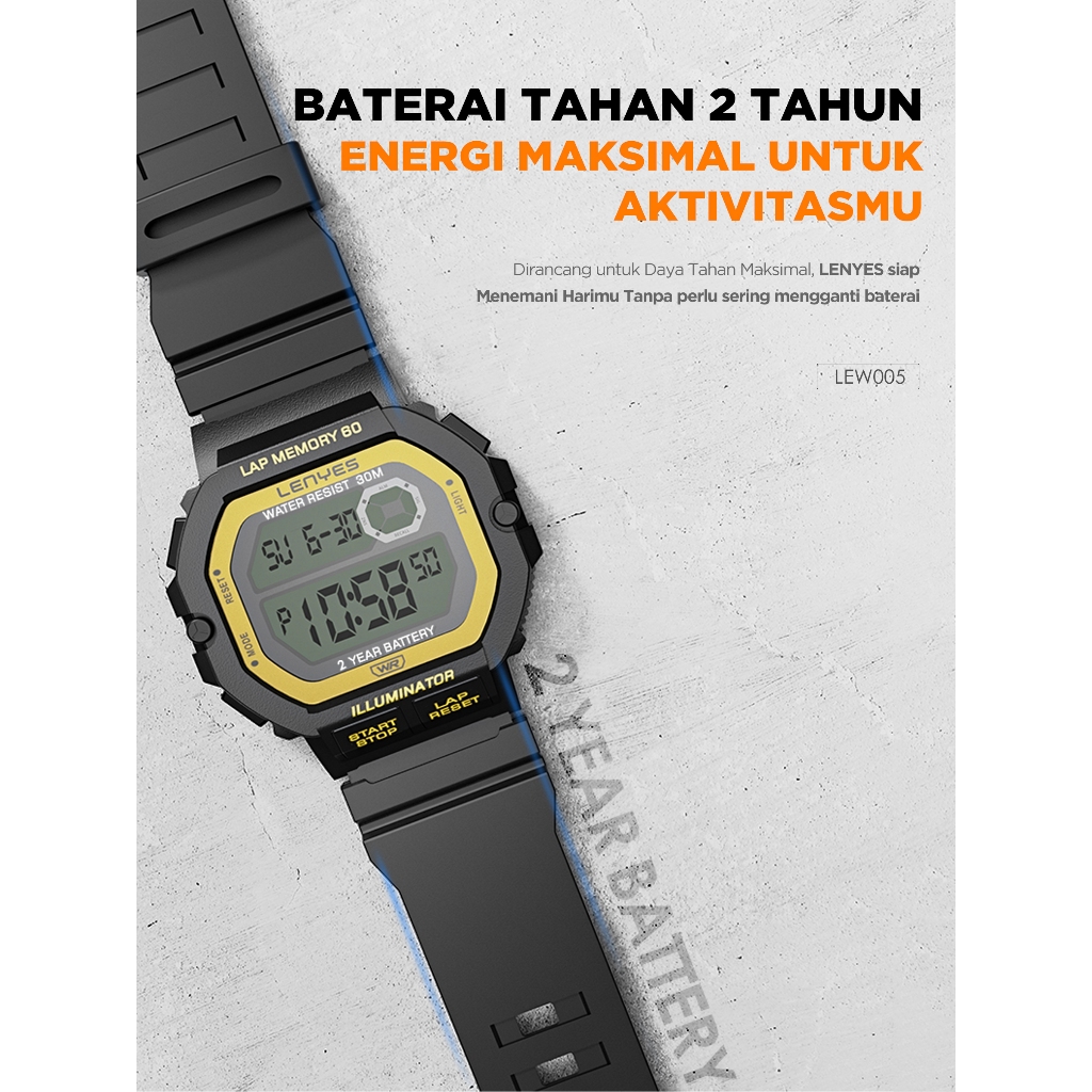 LENYES LEW005 JAM TANGAN PRIA WANITA DIGITAL TAHAN AIR SPORT WATCH RESIN 3ATM WATERPROOF ORIGINAL OFFICIAL STORE