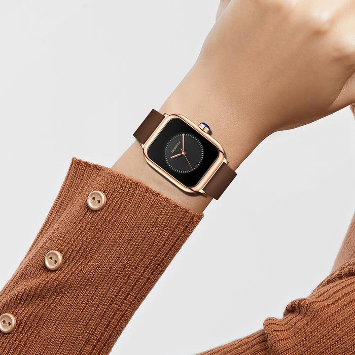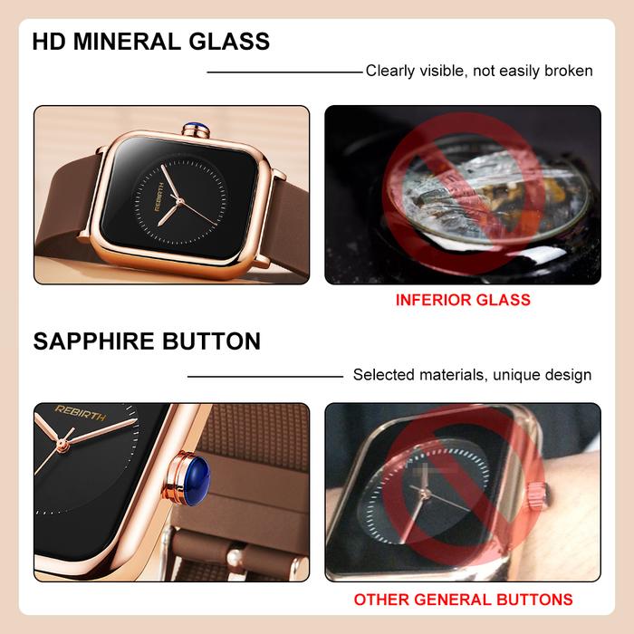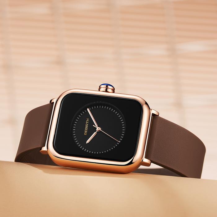 TANPA DP REBIRTH JAM TANGAN WANITA SQURE MODE TALI SILIKON ANTI AIR JAM TANGAN CEWEKHITAM