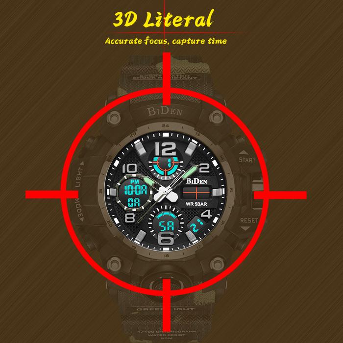 TANPA DP BIDEN JAM TANGAN PRIA MILITER OLAHRAGA DIGITAL&ANALOG TALI SILIKON JAM TANGAN COWOKHITAM