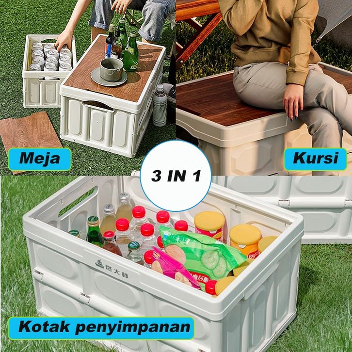 【KAONE】Storage box outdoor Kotak Penyimpanan Camping Multifungsi Penutup Kayu Plastik Keranjang Piknik Kotak