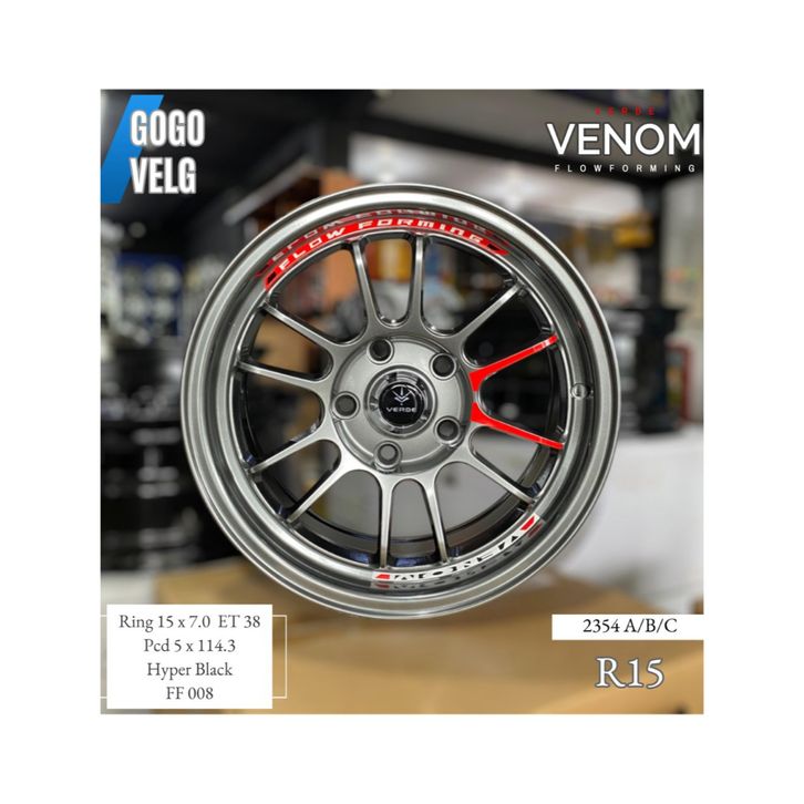 Velg Mobil Venom Flow Forming R15 PCD 5X114,3 Innova Ertiga CRV Hyper Black ET 38 Lebar 7 Ring 15