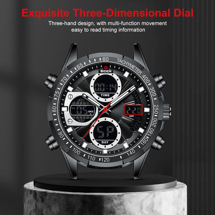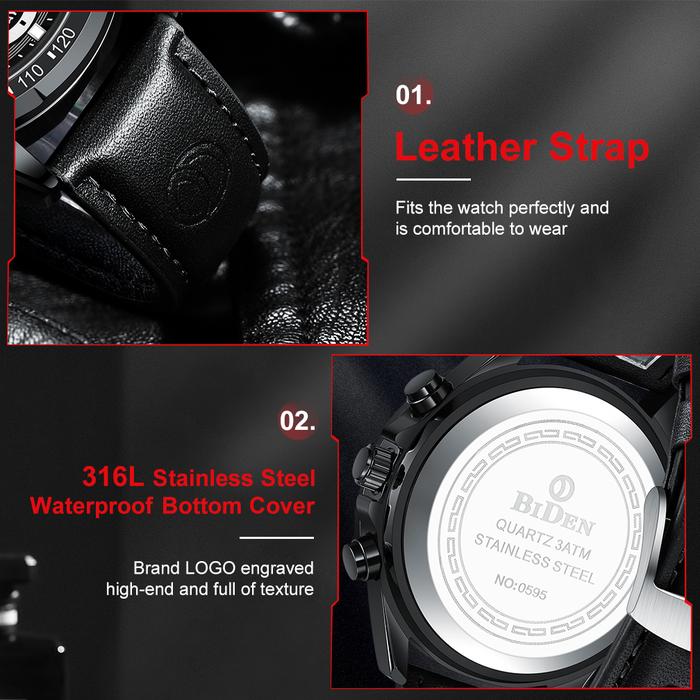 TANPA DP BIDEN JAM TANGAN PRIA FASHION COOL TALI KULIT MULTIFUNSI SPORTS ORIGINAL JAM TANGAN COWOKALLBLACK
