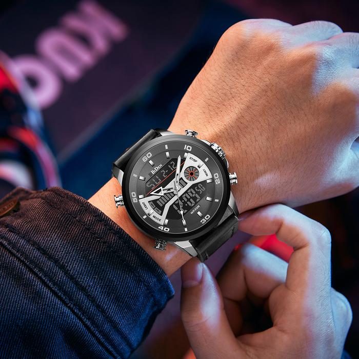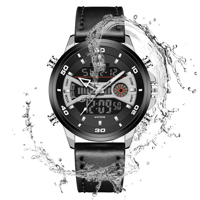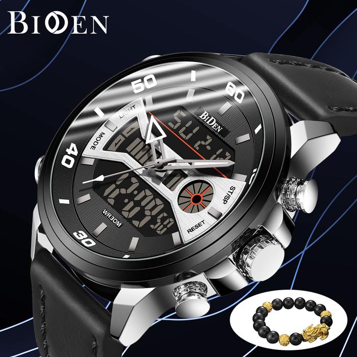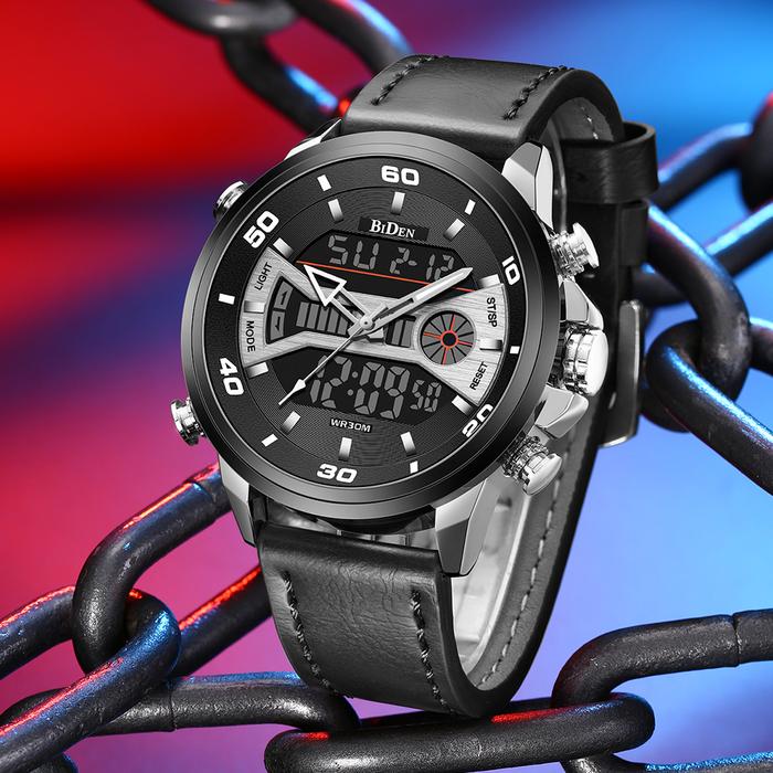 TANPA DP BIDEN JAM TANGAN PRIA OLAHRAGA DUAL MOVEMENT TAMPILAN TANGGAL KUARSA TALI KULITHITAM