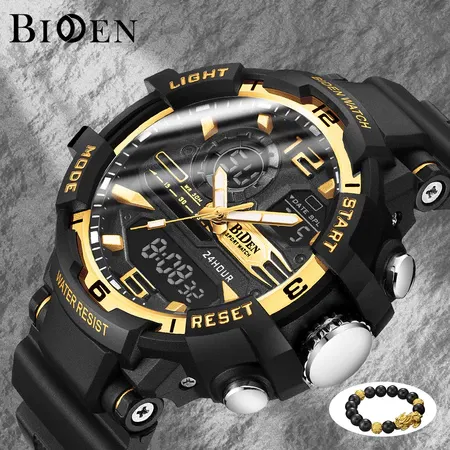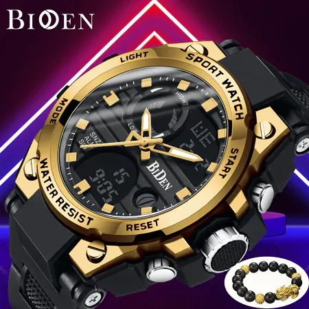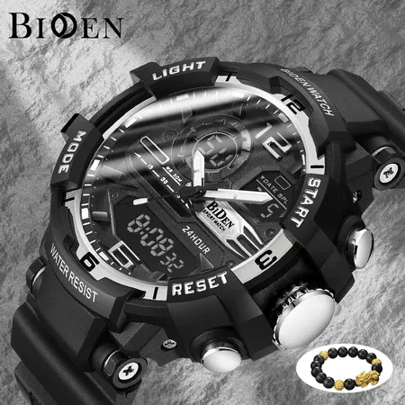 mall inline badgeBIDEN Jam Tangan Pria Digital&Analog Anti Air Olahraga Militer Pria Tali Silikon Luminous Jam Tangan Co