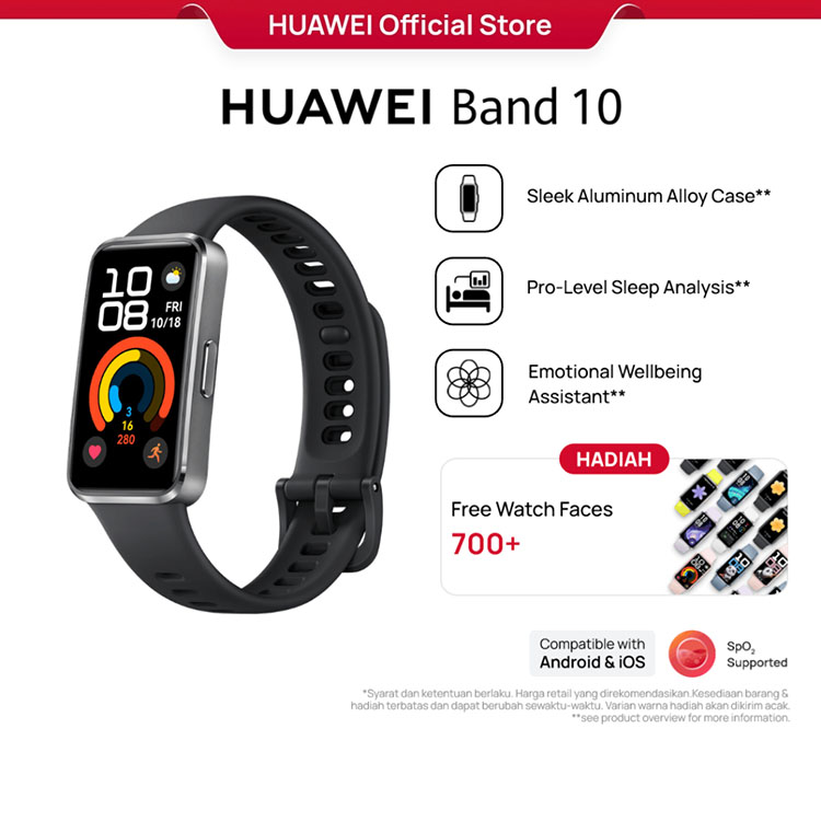 HUAWEI Band 10 Smartband Sleek Aluminum Alloy Case Pro-Level Sleep Analysis Emotional Wellbeing Assistant