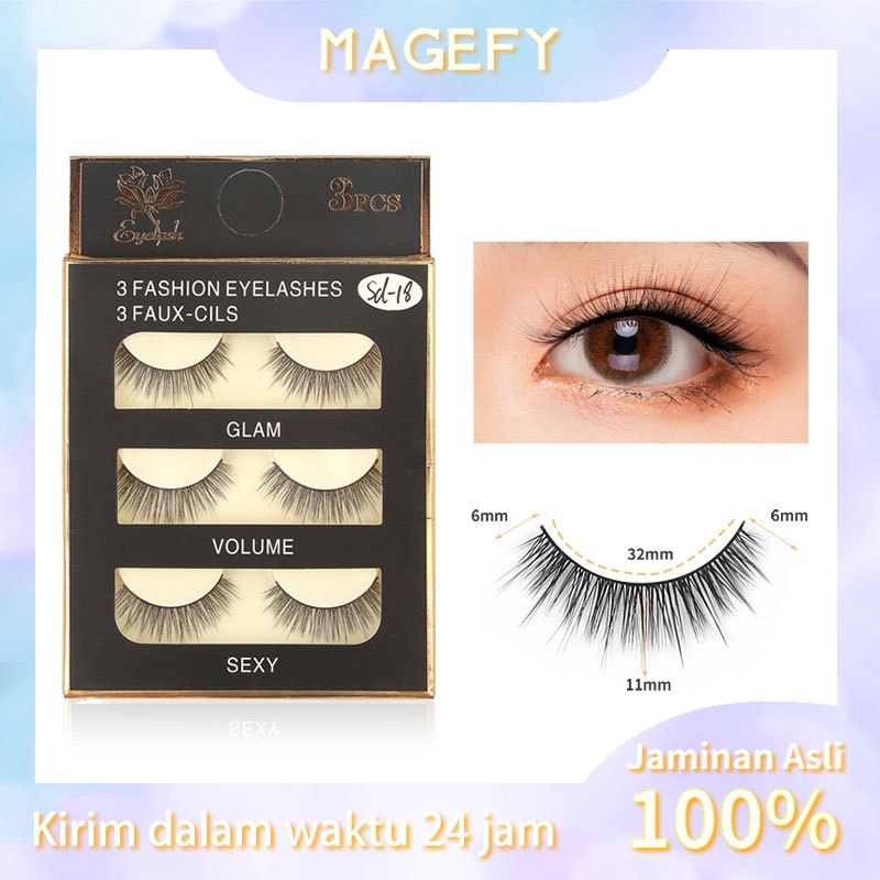 MAGEFY 3 PASANG BULU MATA PALSU NATURAL PALSU LEMBUT PREMIUM VOLUME KERITING FALSE EYELASHES 3D TANGAN EYELASH EXTENSION